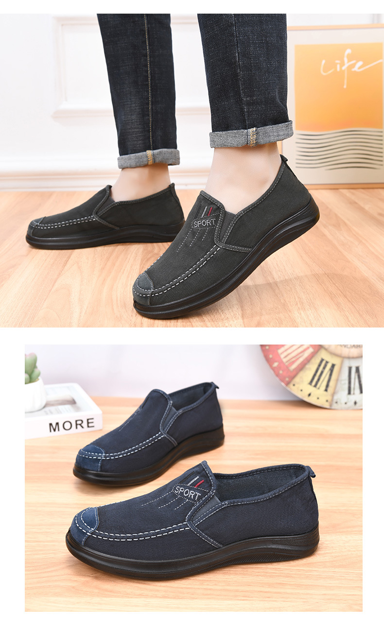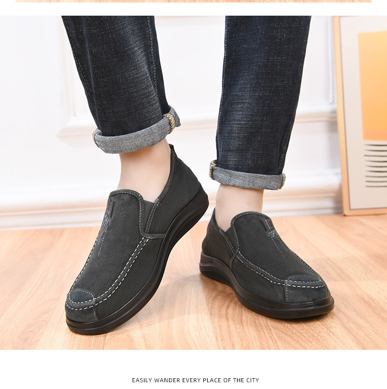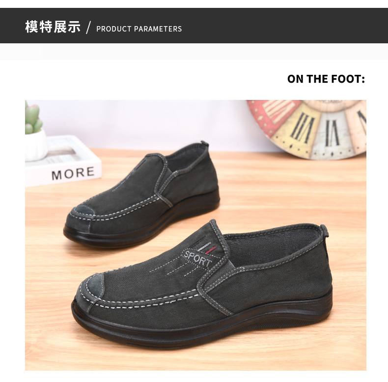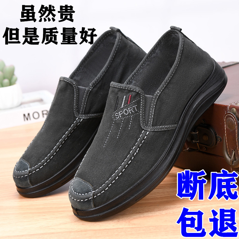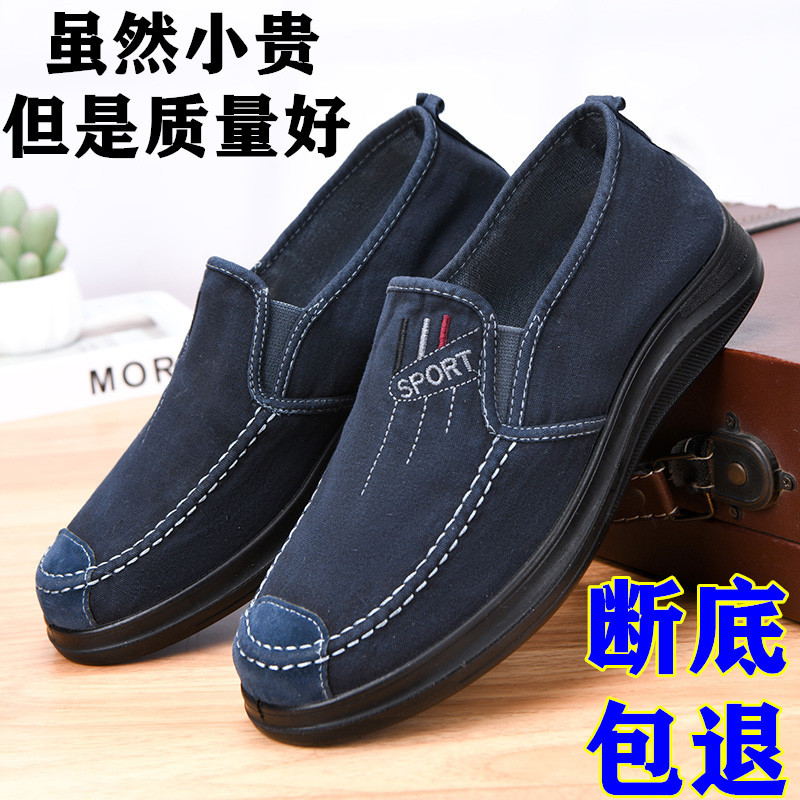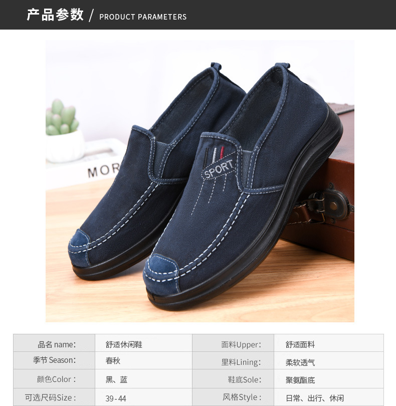 Весенне-осенняя мужская повседневная обувь, туфли из полиуретана из стираной ткани в стиле старой пекинской ткани, туфли без шнуровки для пап среднего и старшего возраста, легкие и удобные для прогулок.