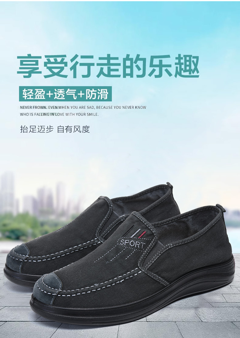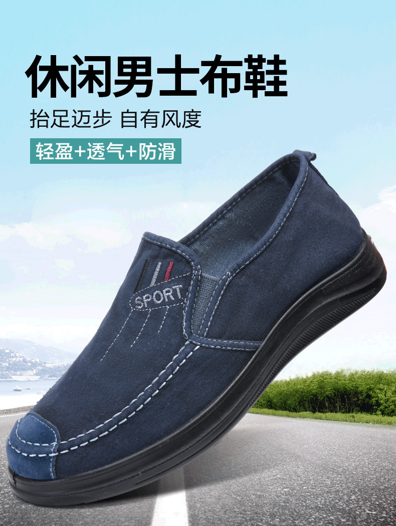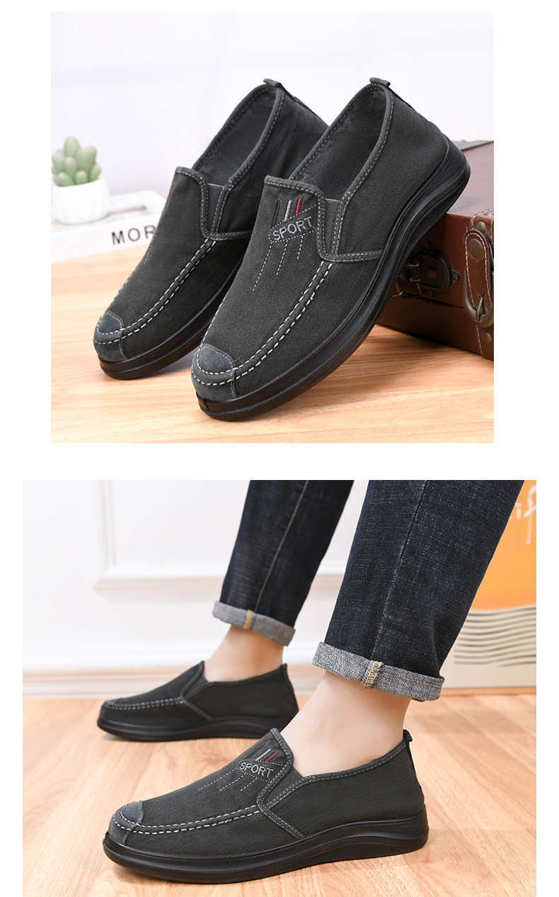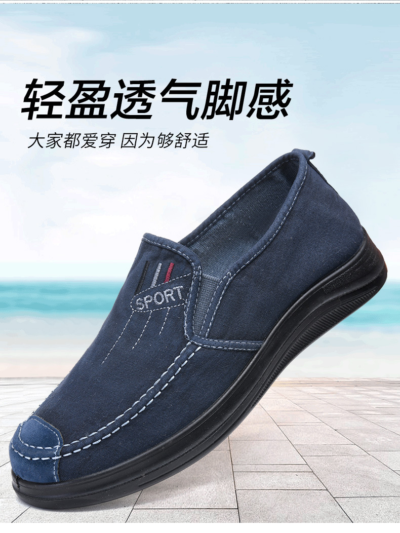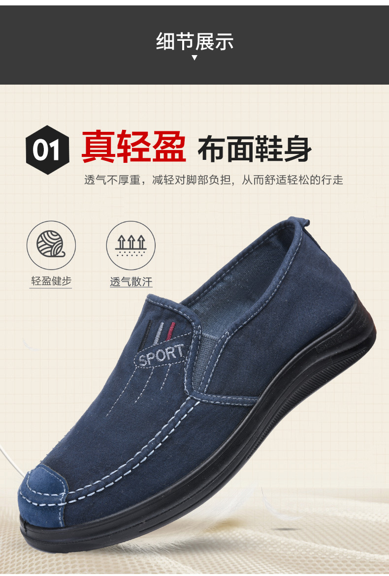 Весенне-осенняя мужская повседневная обувь, туфли из полиуретана из стираной ткани в стиле старой пекинской ткани, туфли без шнуровки для пап среднего и старшего возраста, легкие и удобные для прогулок.
