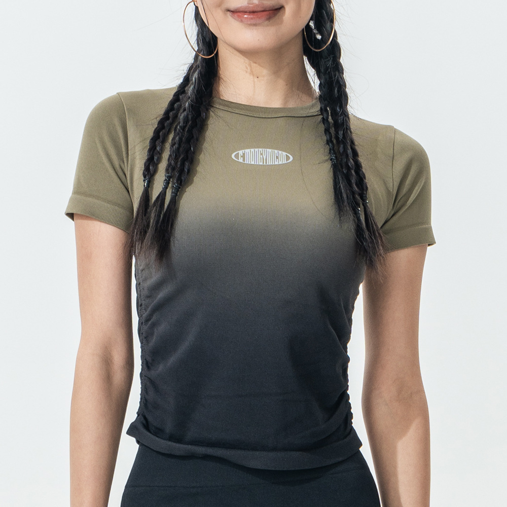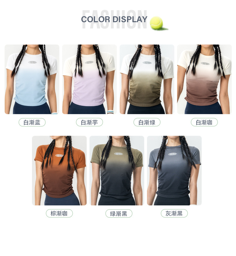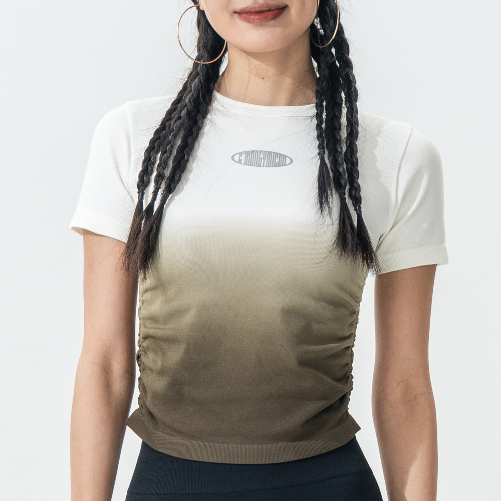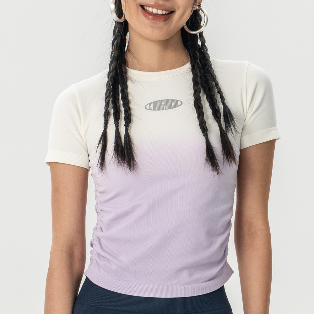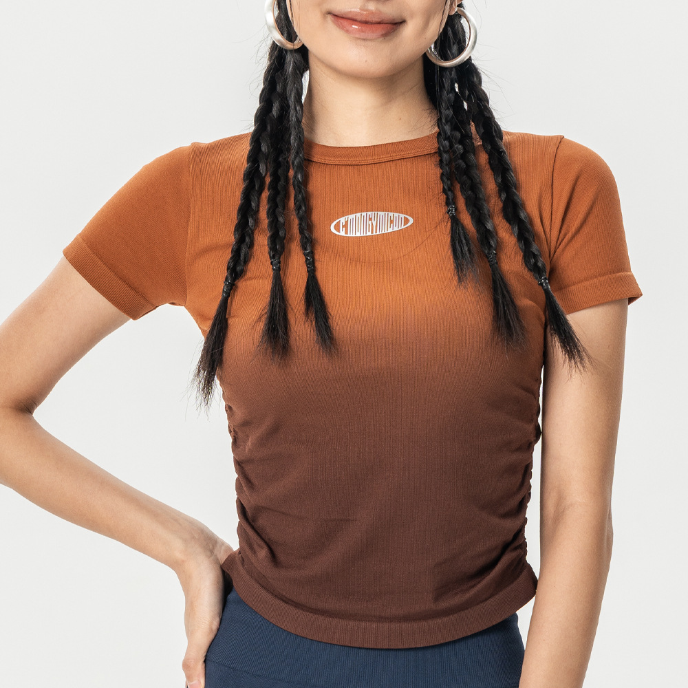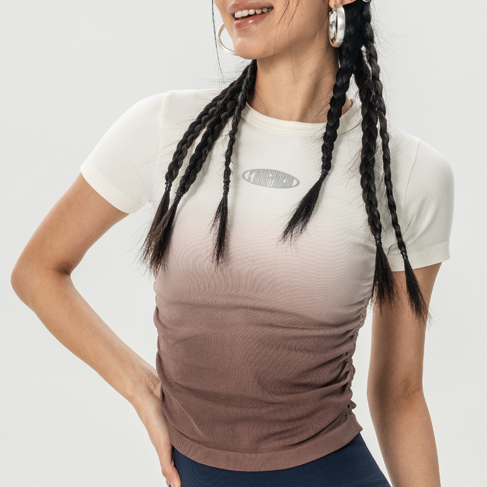 Костюм для йоги Женская весна и лето 2025 новый градиентный спорт с короткими рукавами футболка Майлард тренировочный топ бег фитнес-костюм