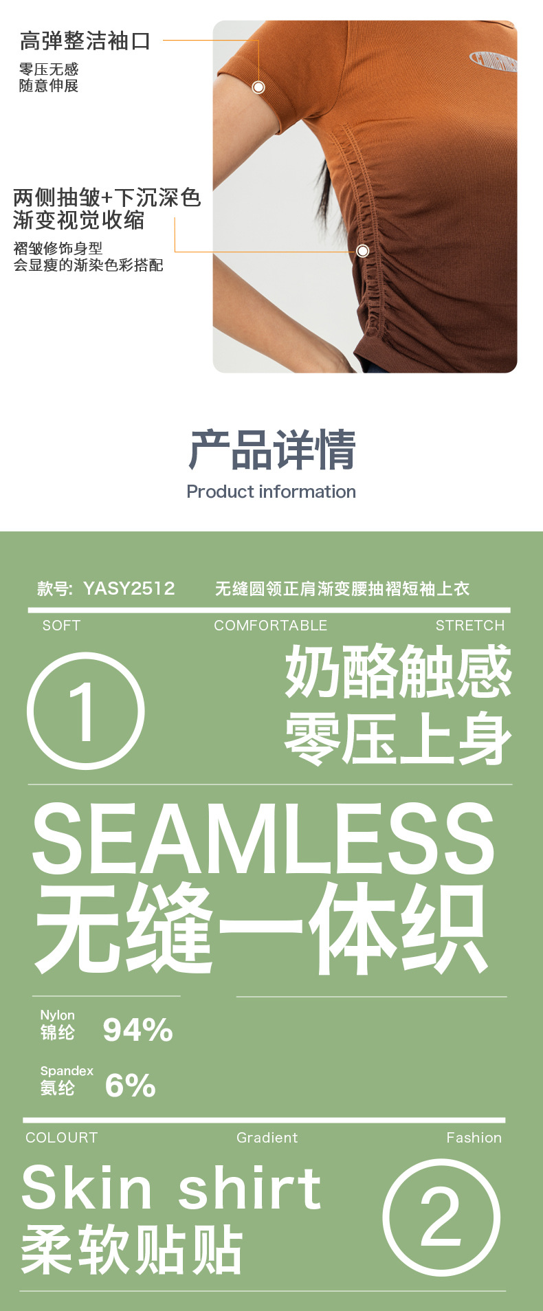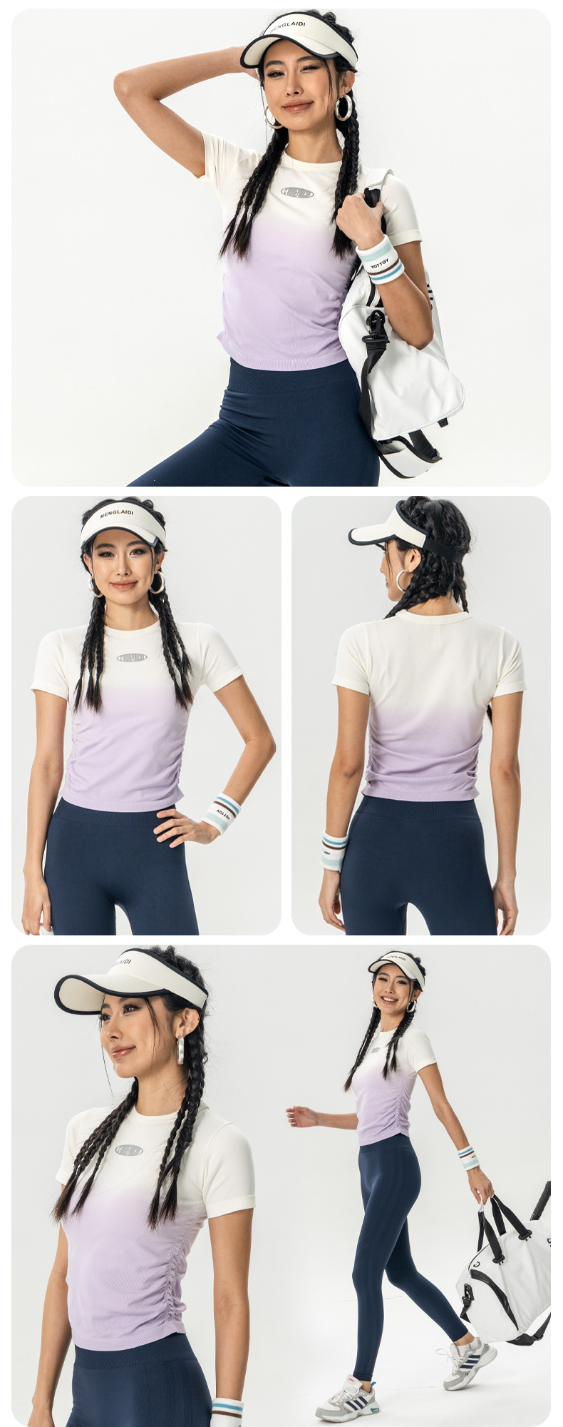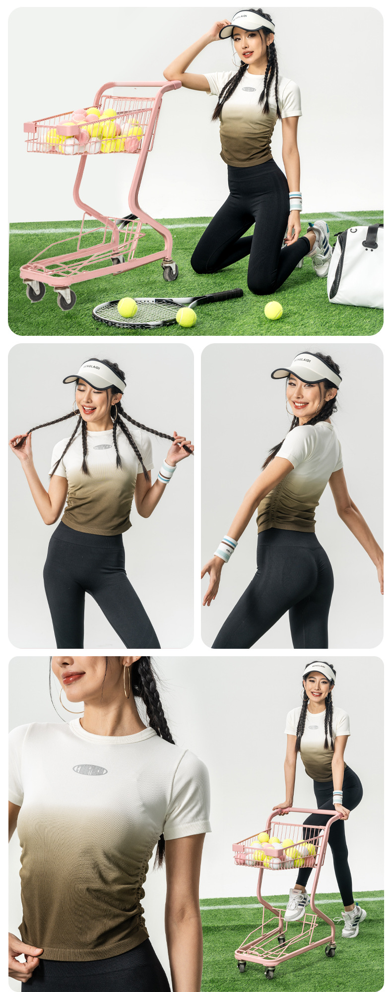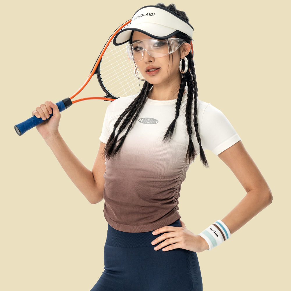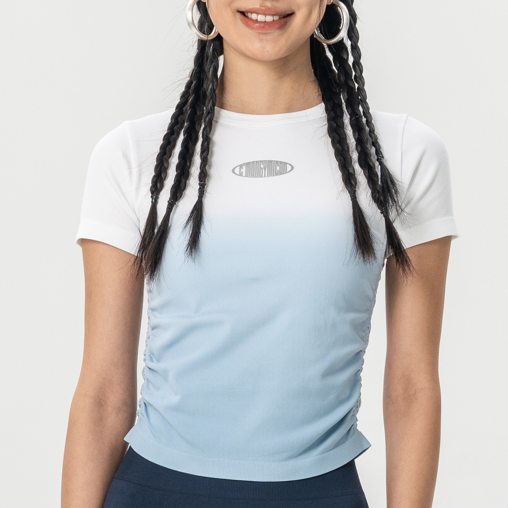 Костюм для йоги Женская весна и лето 2025 новый градиентный спорт с короткими рукавами футболка Майлард тренировочный топ бег фитнес-костюм