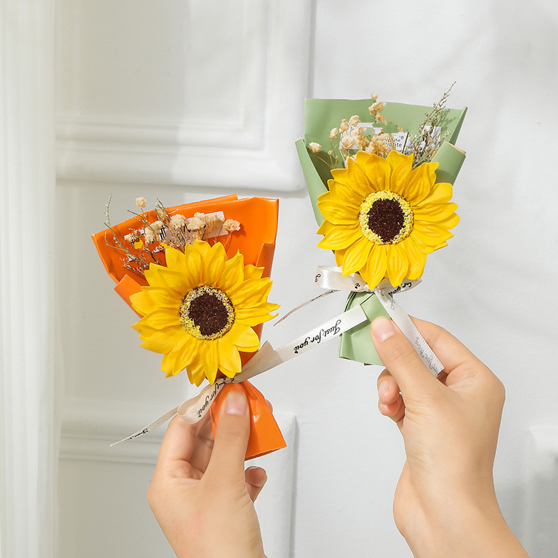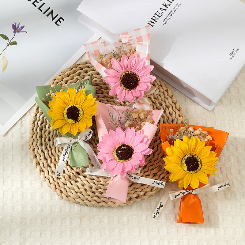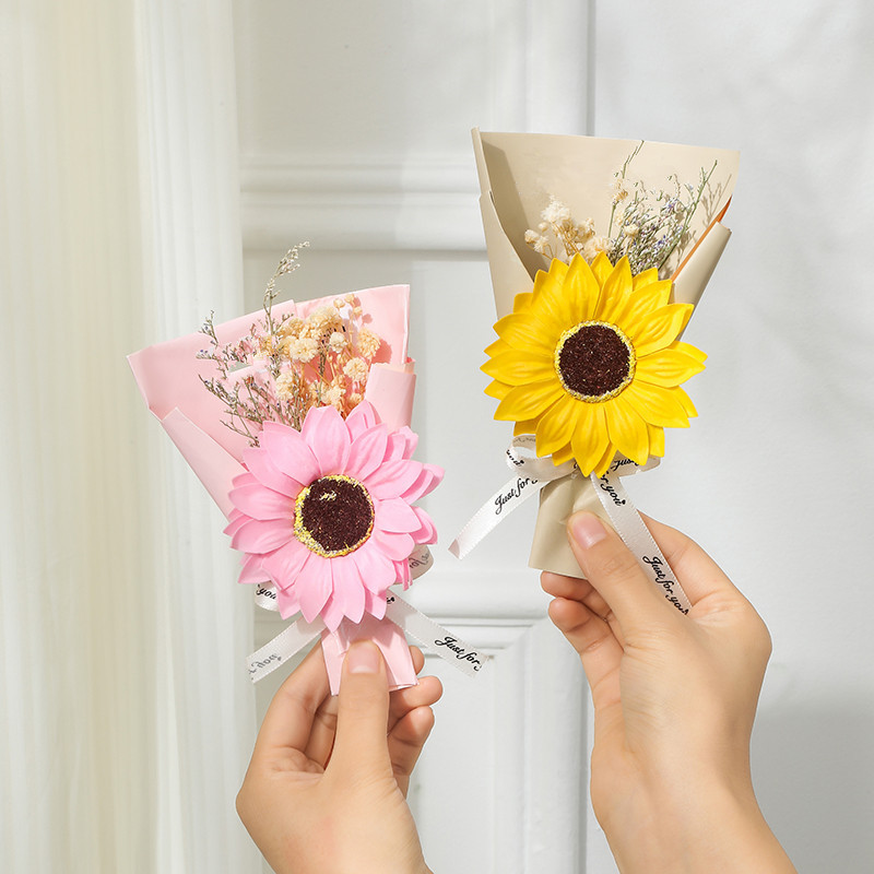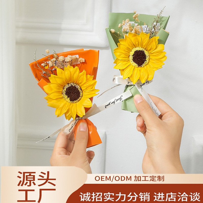 【Трансграничная торговля】Букет из мыльных цветов подсолнуха, сувениры из подсолнуха, подарочная коробка с сухоцветами гипсофилы для выпускного сезона