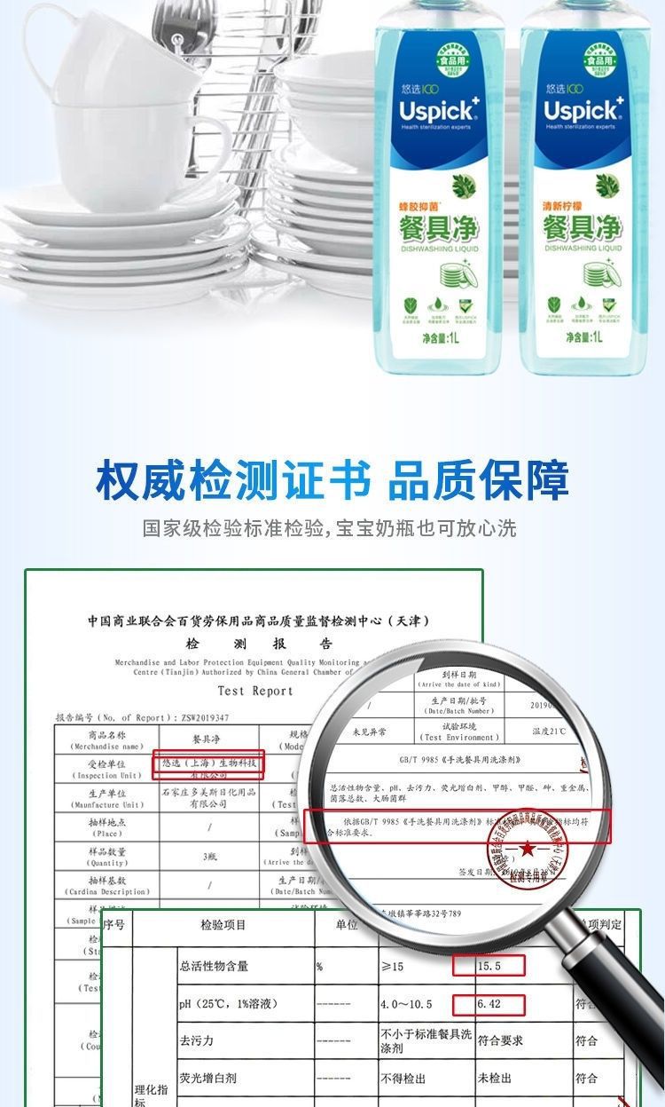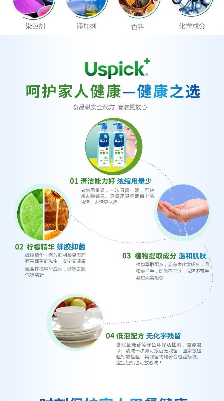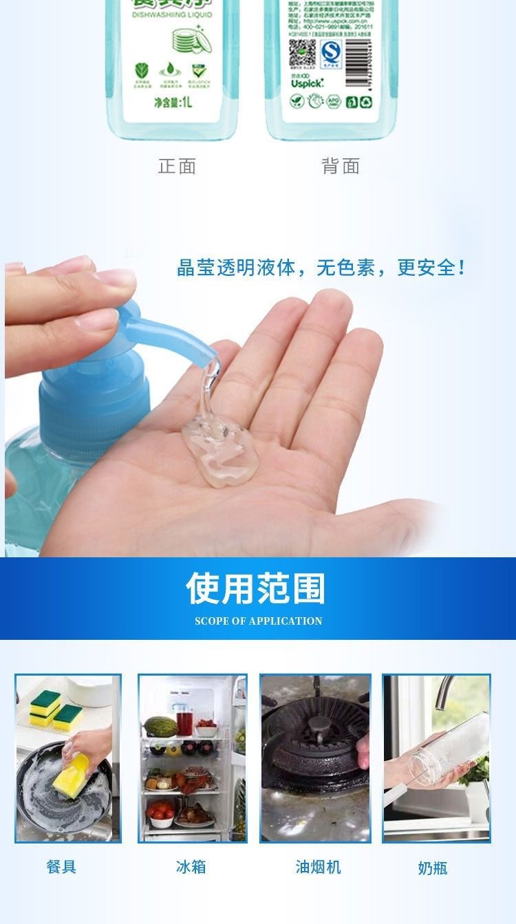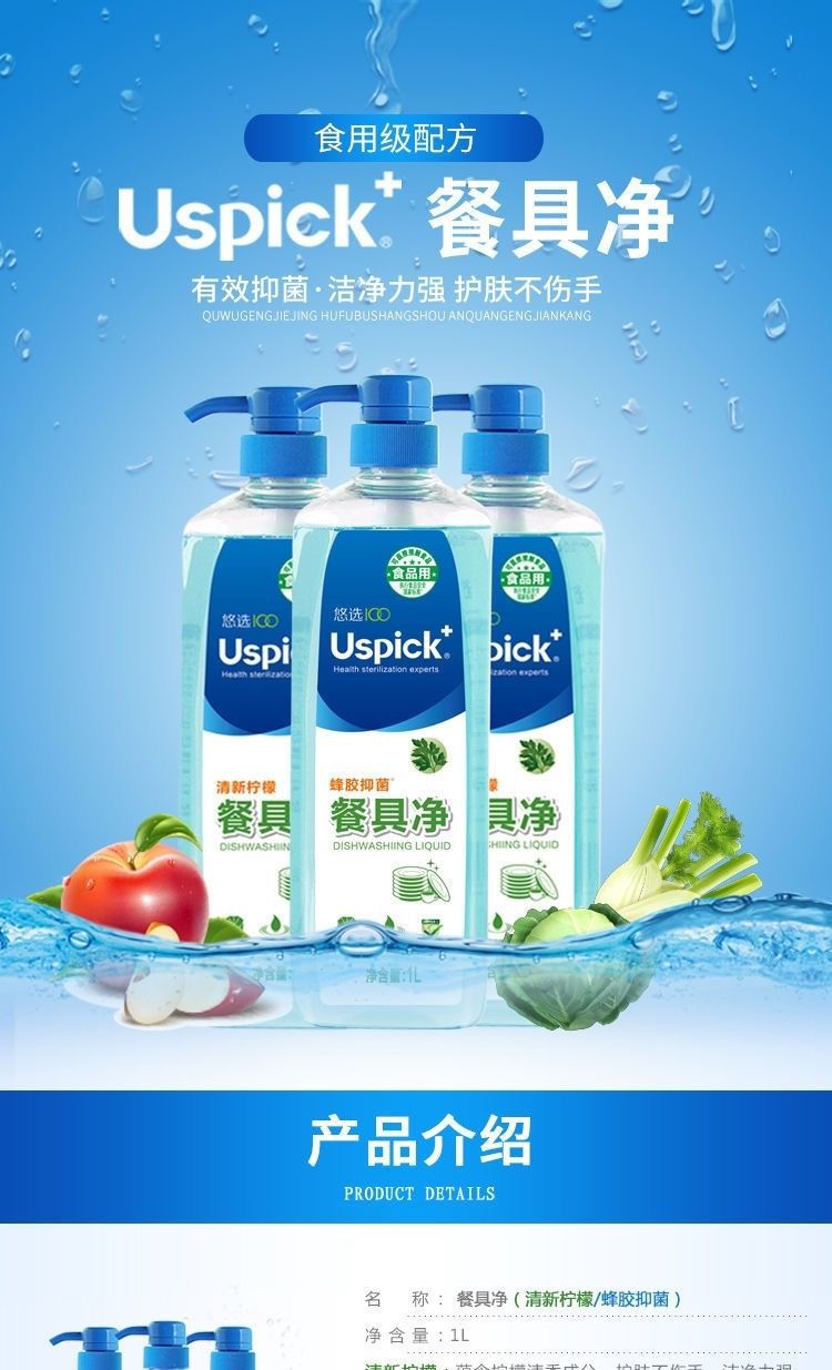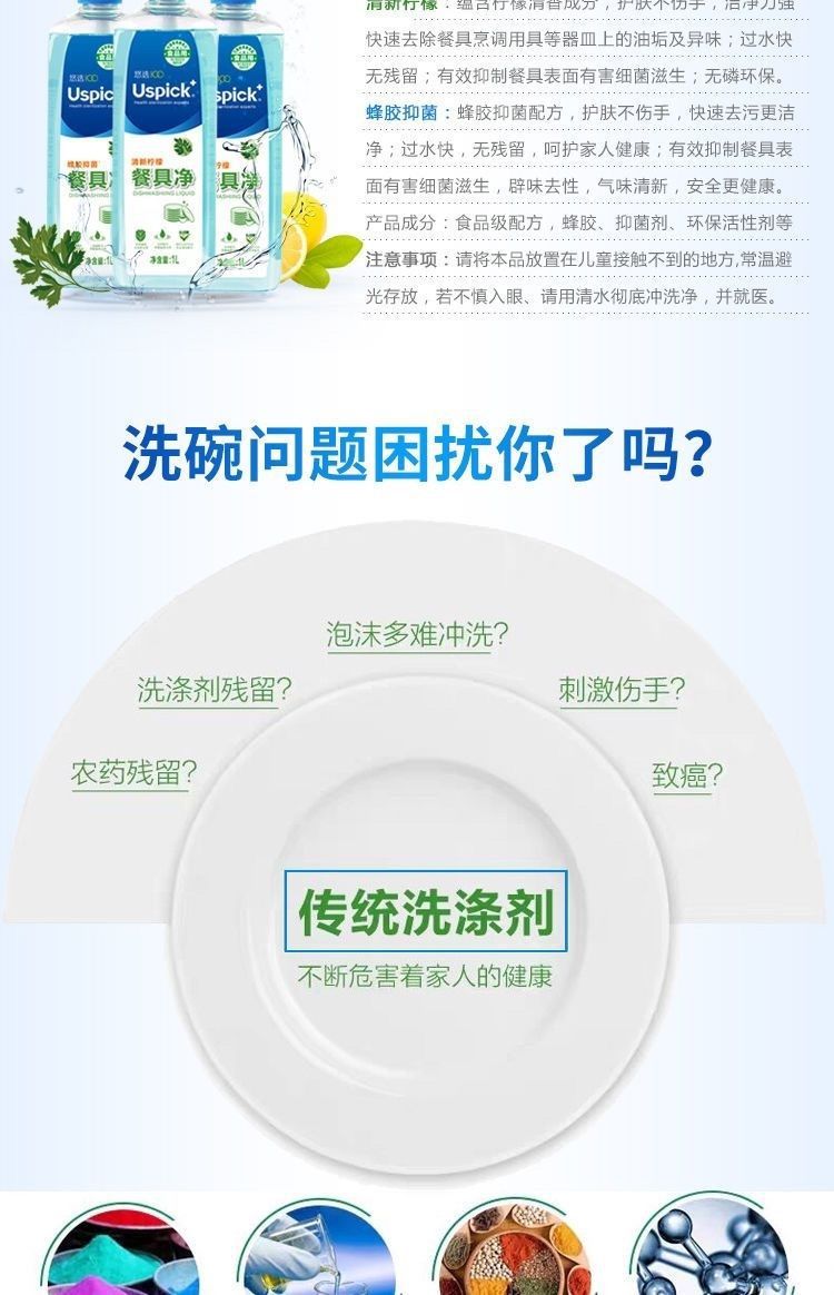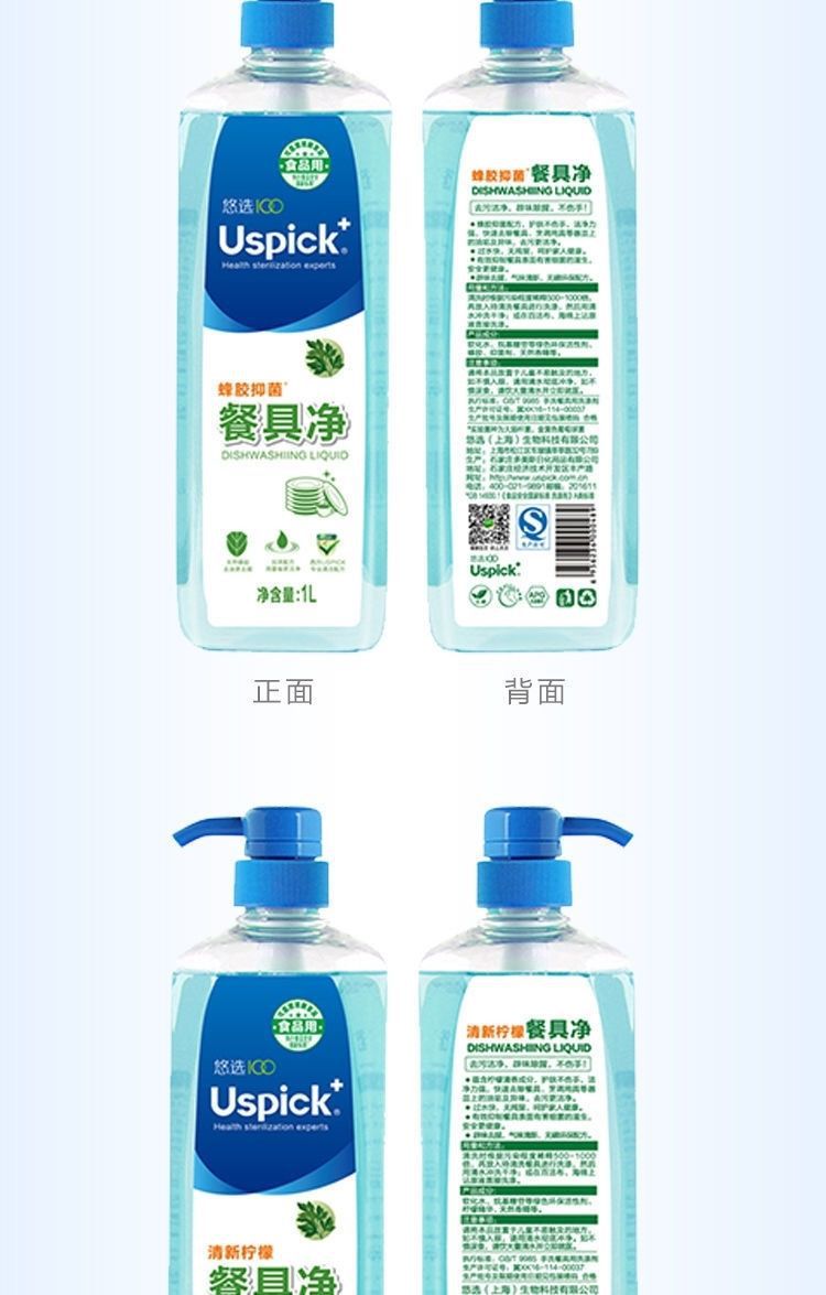 Uspick悠选蜂胶抑菌柠檬餐具净家用厨房洗洁精商用餐饮洗碗洗涤剂