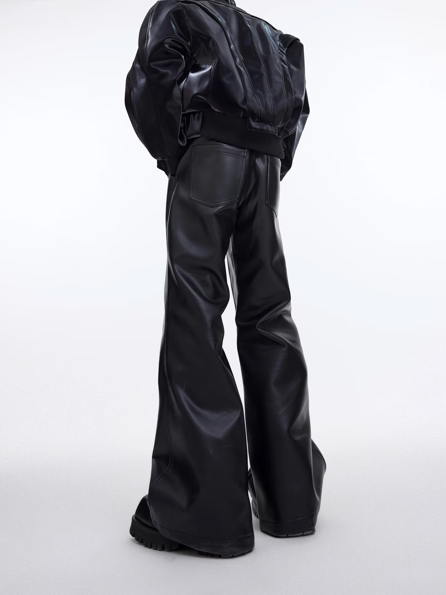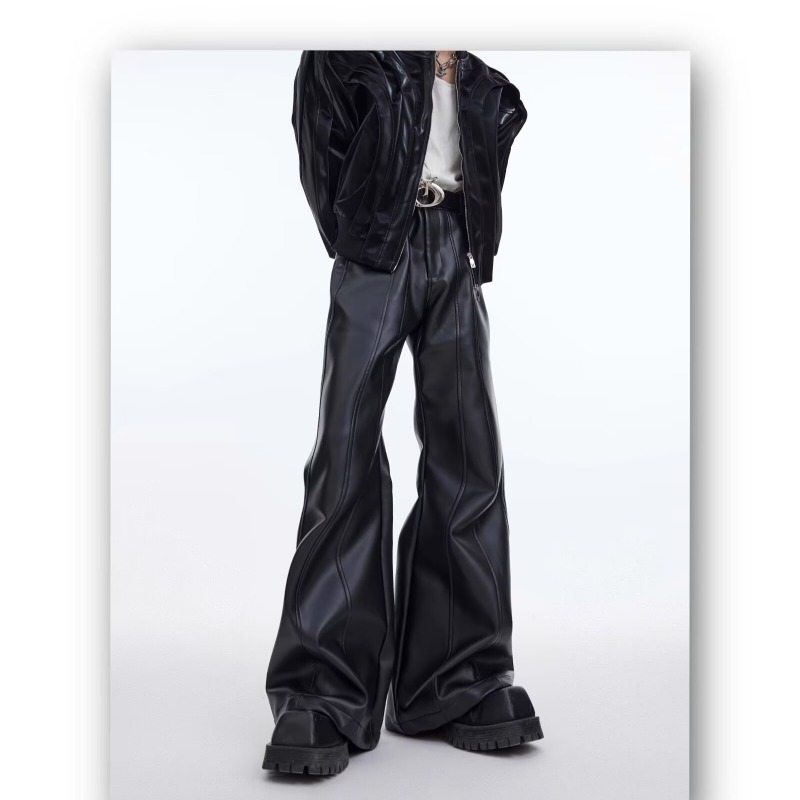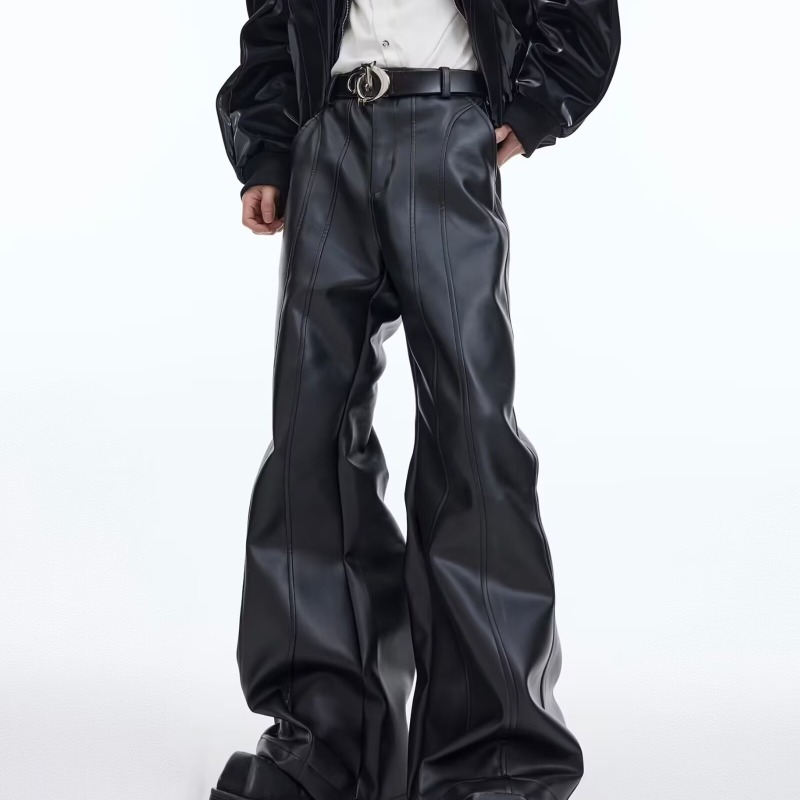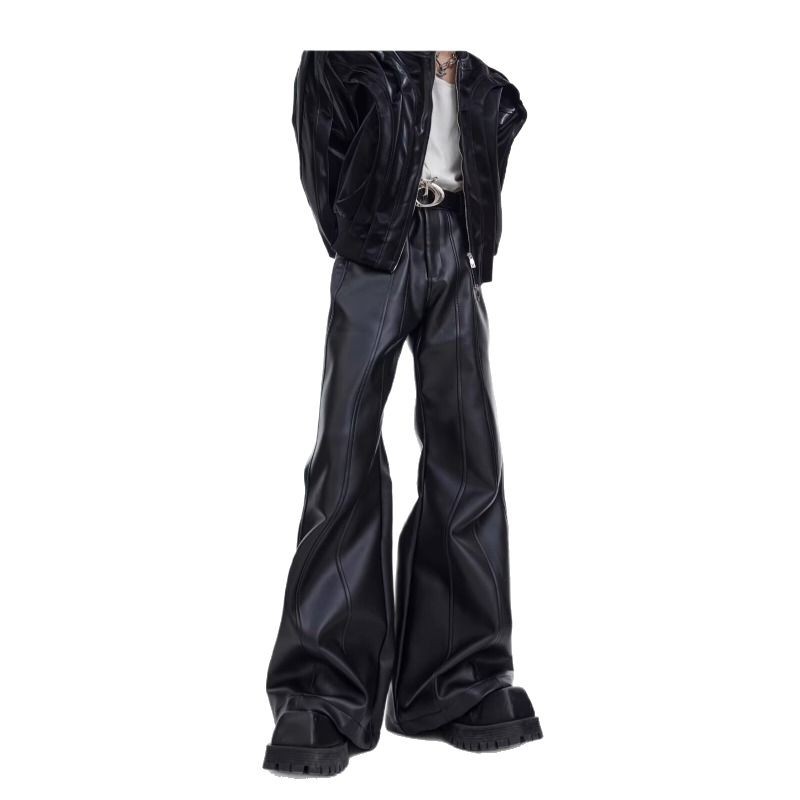 Подростковый ретро стирается, стирается и делит дизайн чувство нишевые кожаные штаны модные дикие свободные прямые брюки для мужчин