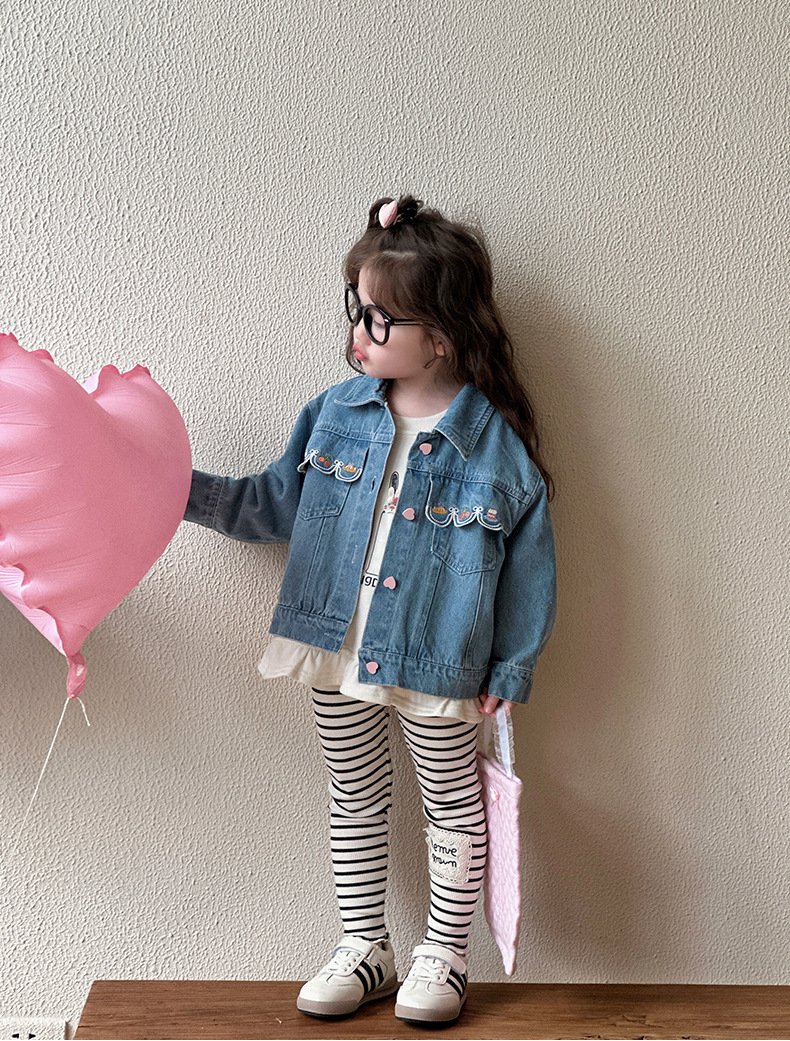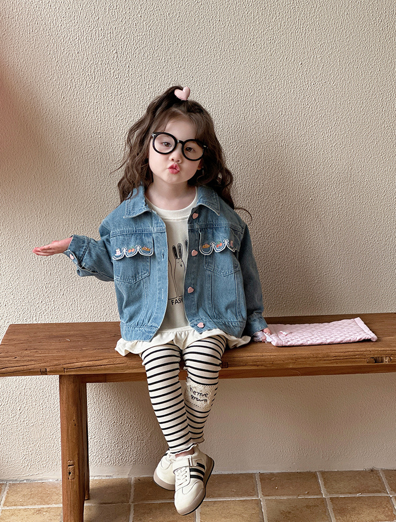Джинсовая куртка для девочек, весна-осень 20220, новые детские топы в корейском стиле, модная одежда для маленьких девочек, детская осенняя одежда