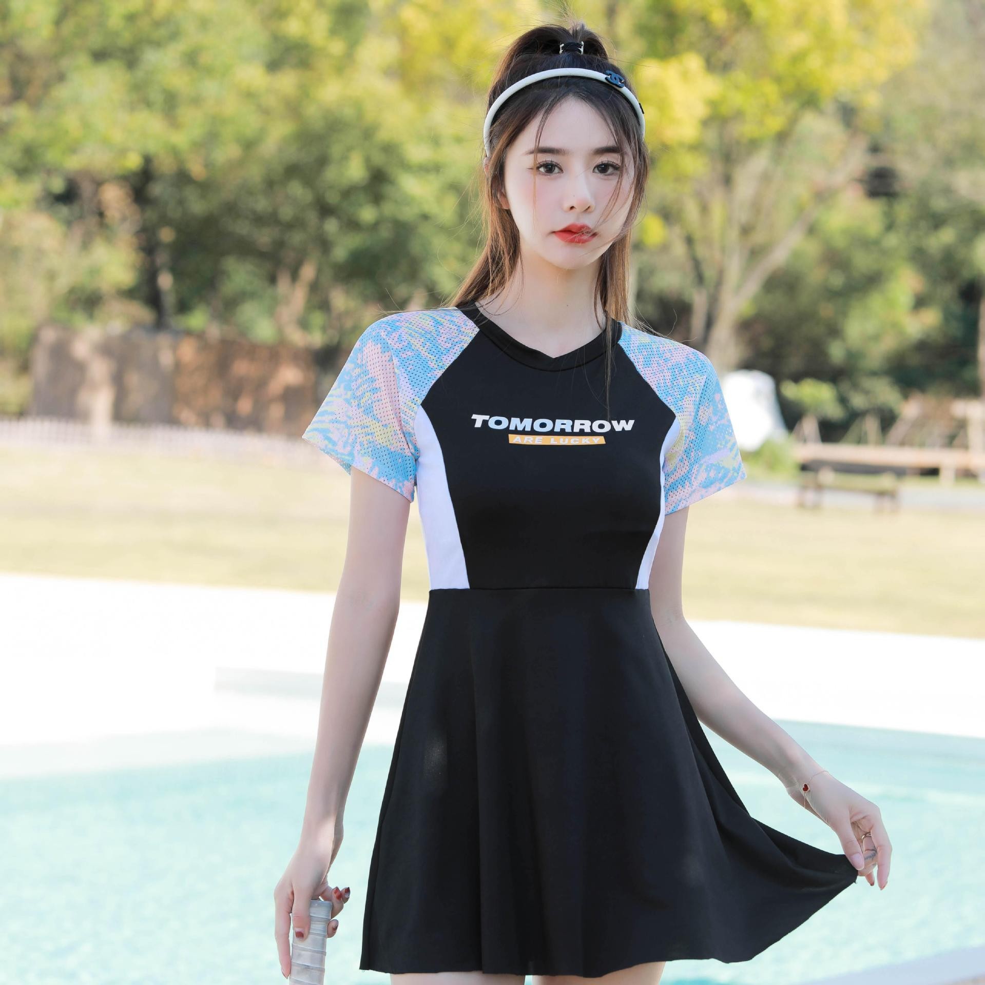 Новый стиль женская цельный юбка спортивный стиль досуг консервативный тонкий живот пляжный спа купальник женский оптовый