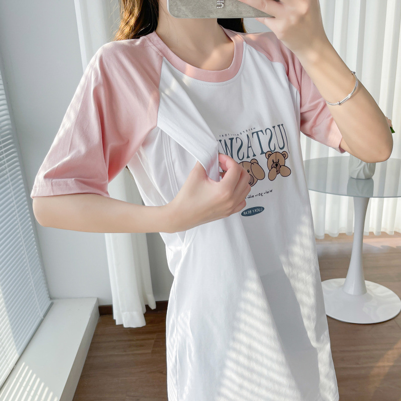 8646 летняя нижняя рубашка с короткими рукавами с принтом кормления