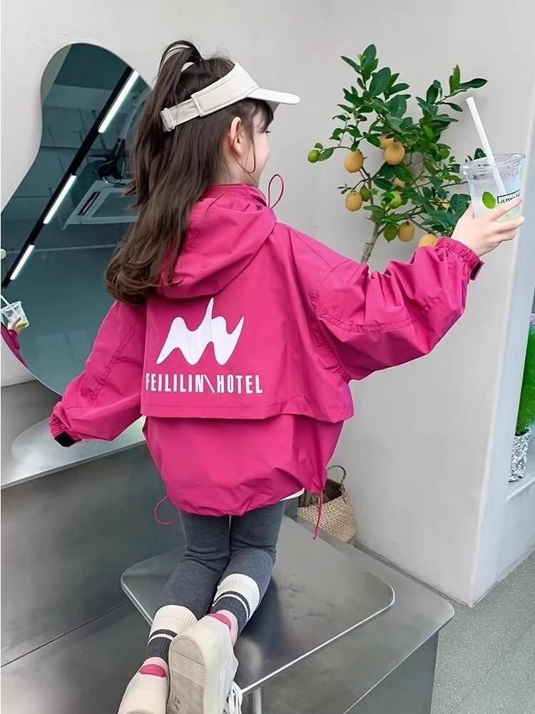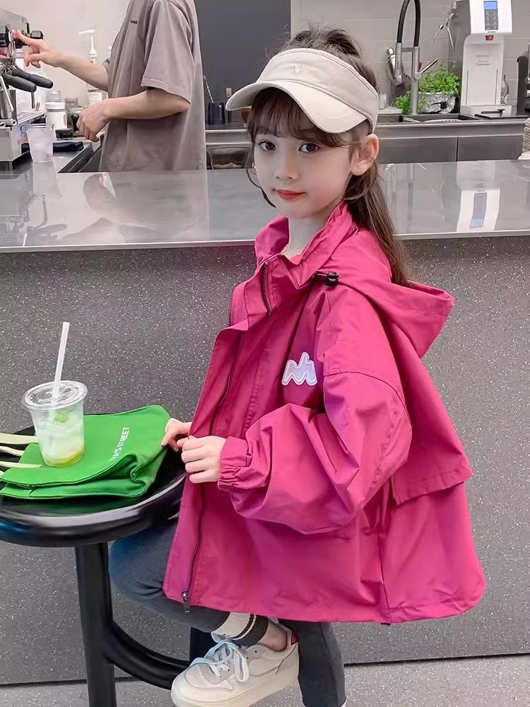 Куртка для девочек весна и осень 2025 новая иностранная детская куртка весна маленькая девочка куртка с капюшоном