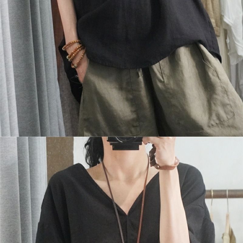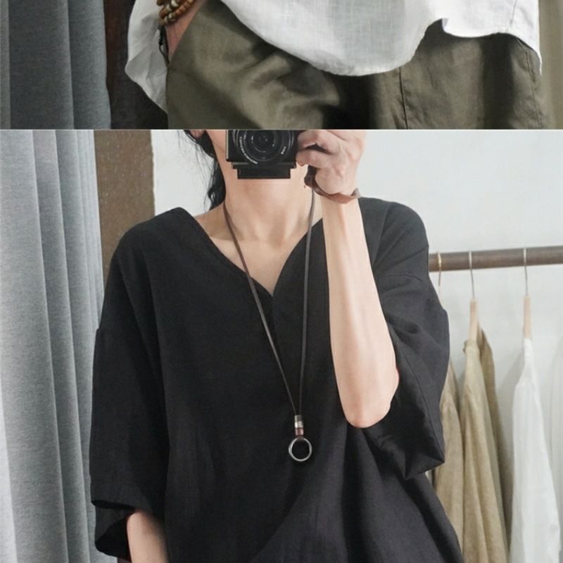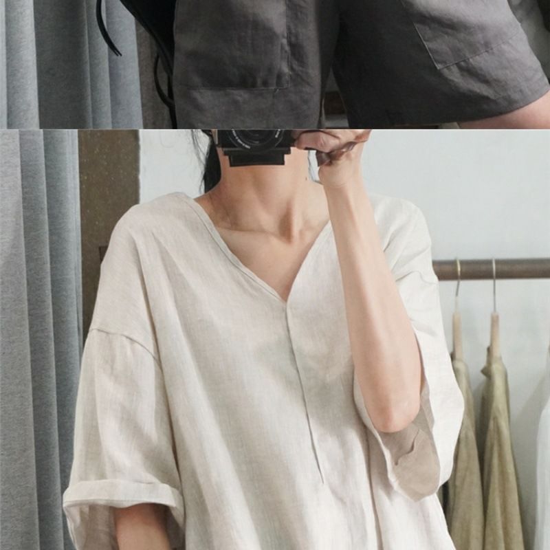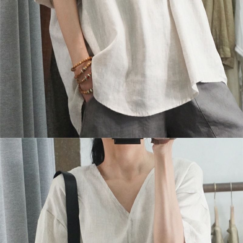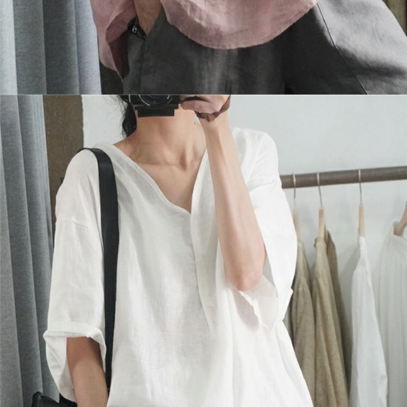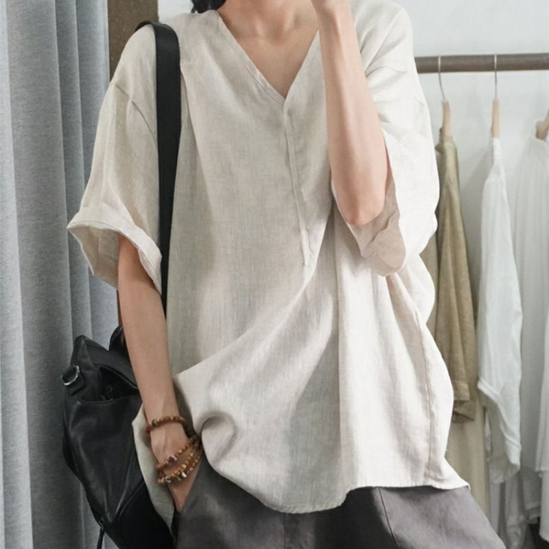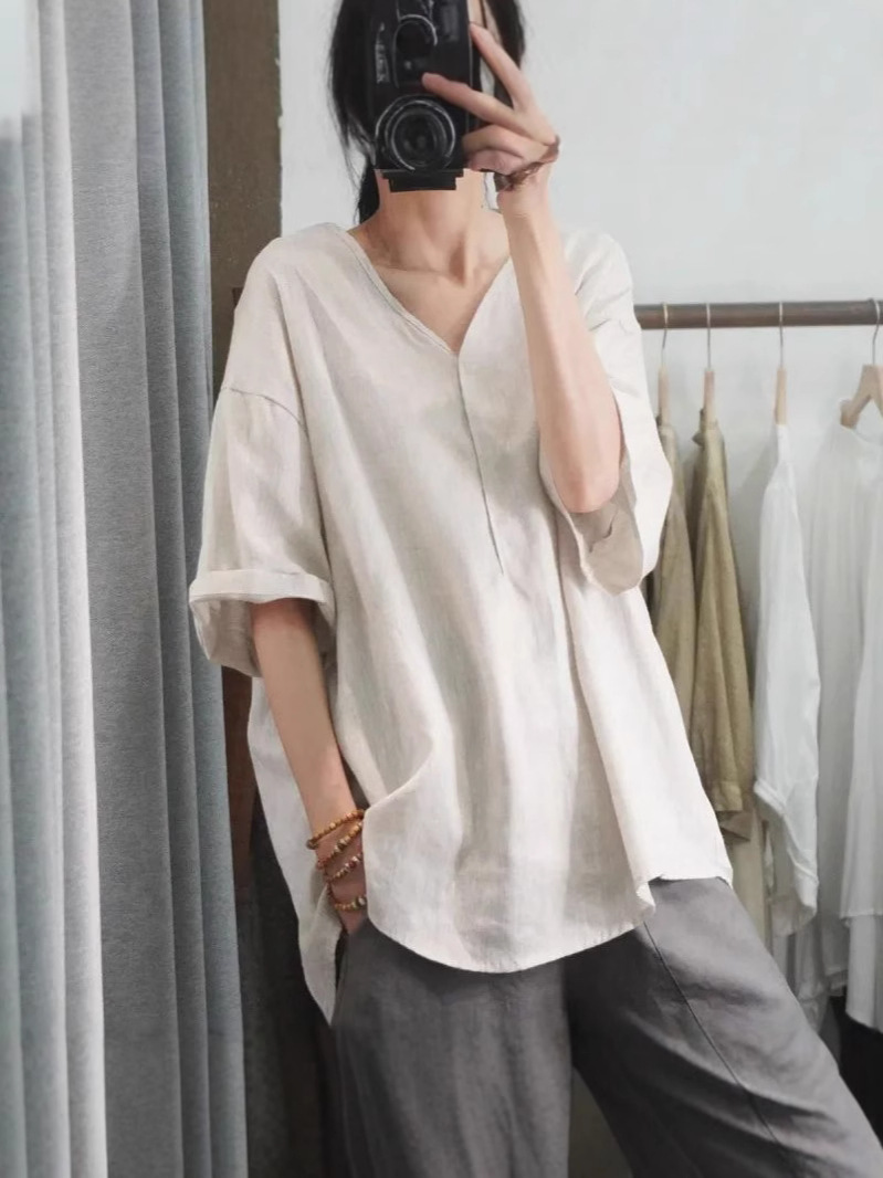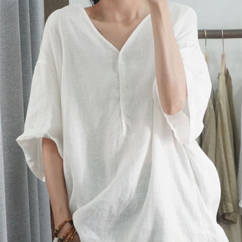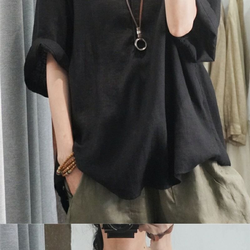 Летний новый стиль с половиной рукава повседневный свободный большой размер, покрывающий мясо, удобный V-образный топ с короткими рукавами футболка сплошной цвет высокого уровня женская одежда