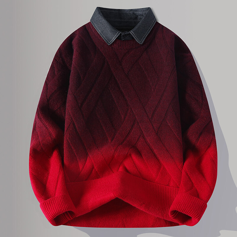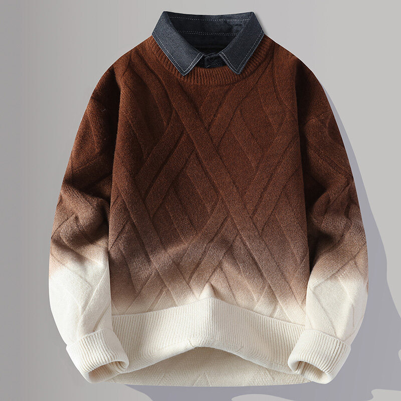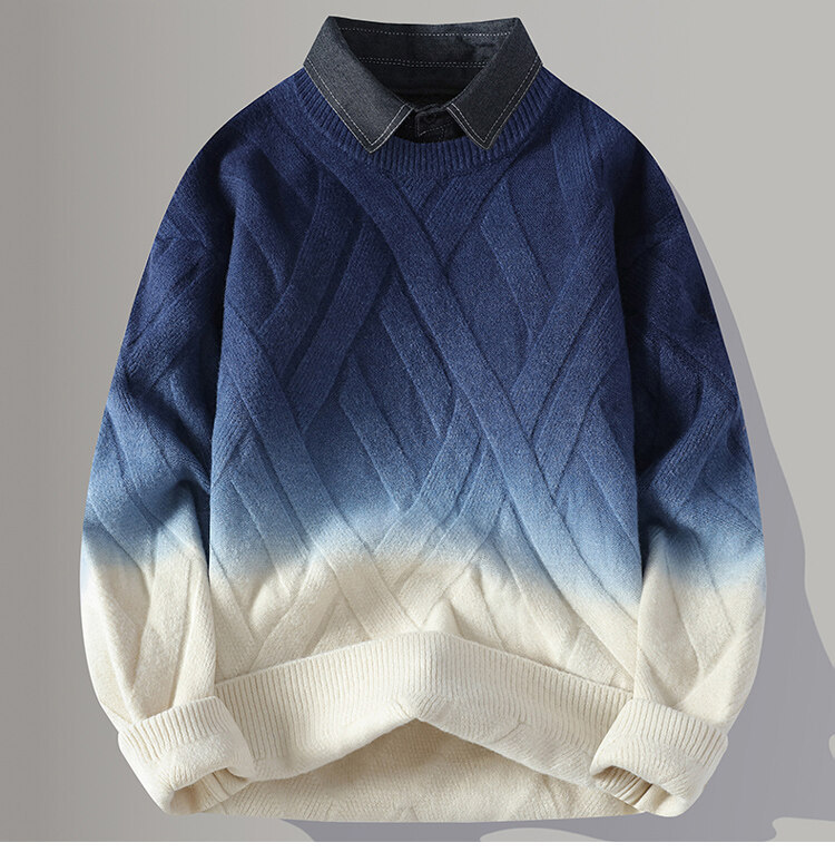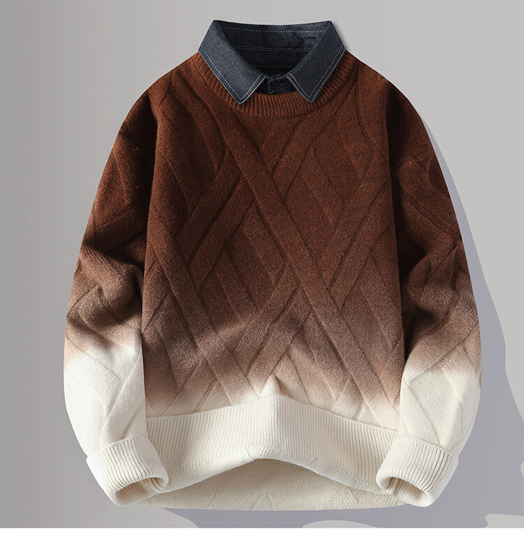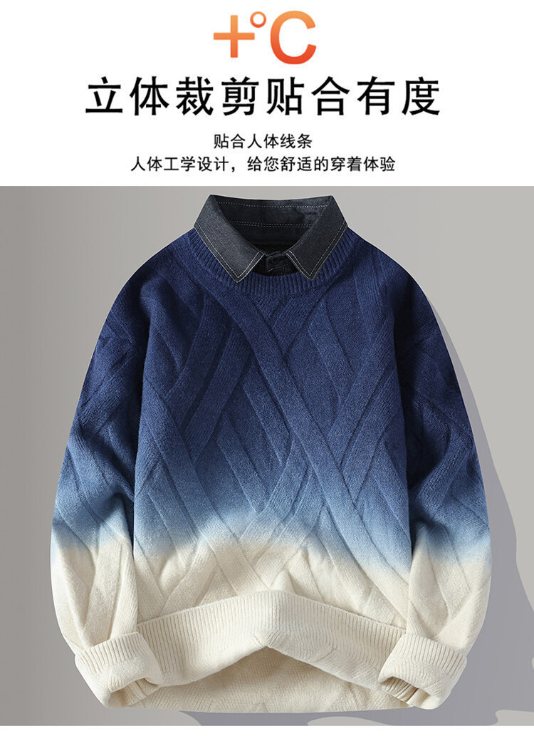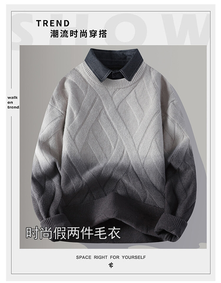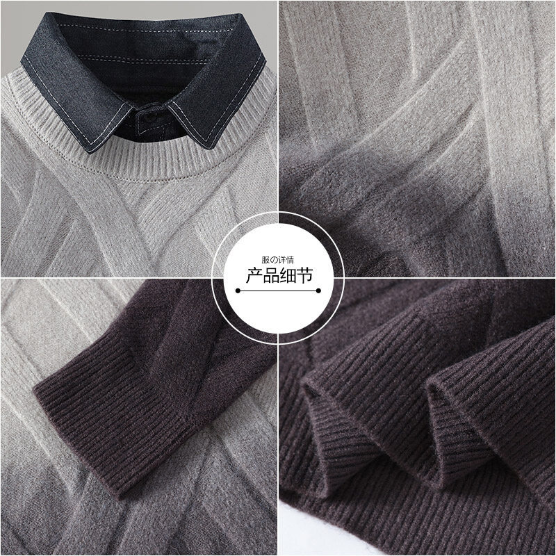 2024 Взрывная мужская рубашка воротник поддельный свитер из двух частей мужской вязаный свитер мужской свитер