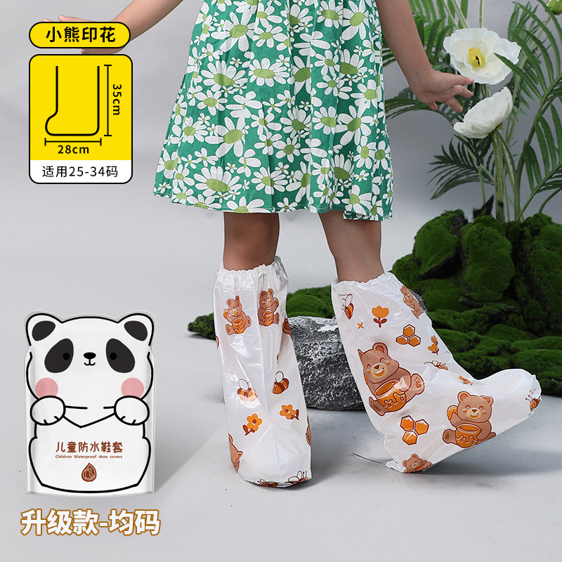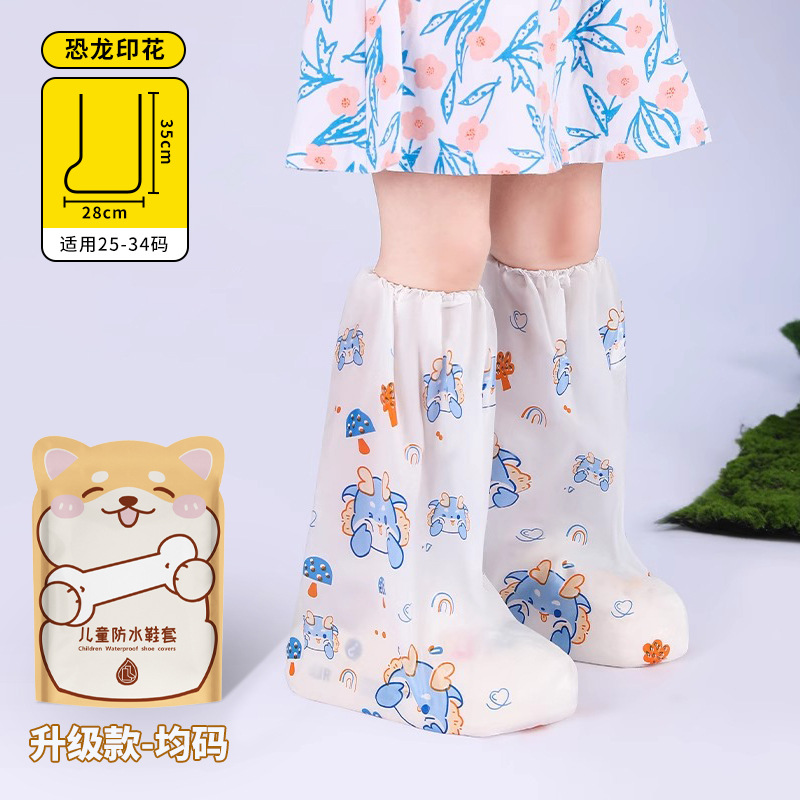 Детские одноразовые дождевые бахилы с высокой трубкой утолщенные нескользящие дождевые дни портативные водонепроницаемые ножные чехлы для студенческих мультяшных принтов дождевые сапоги