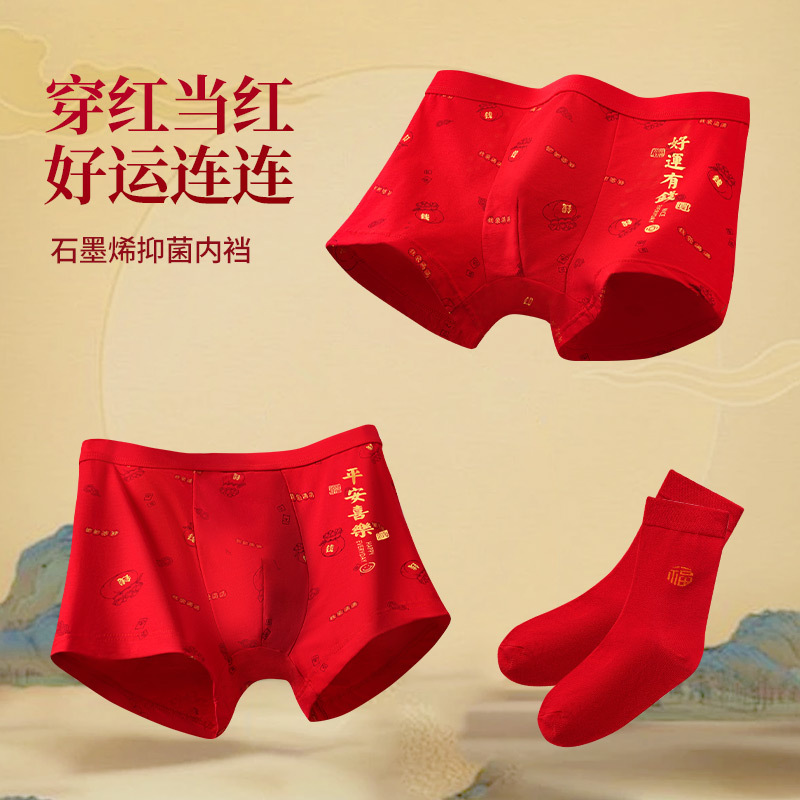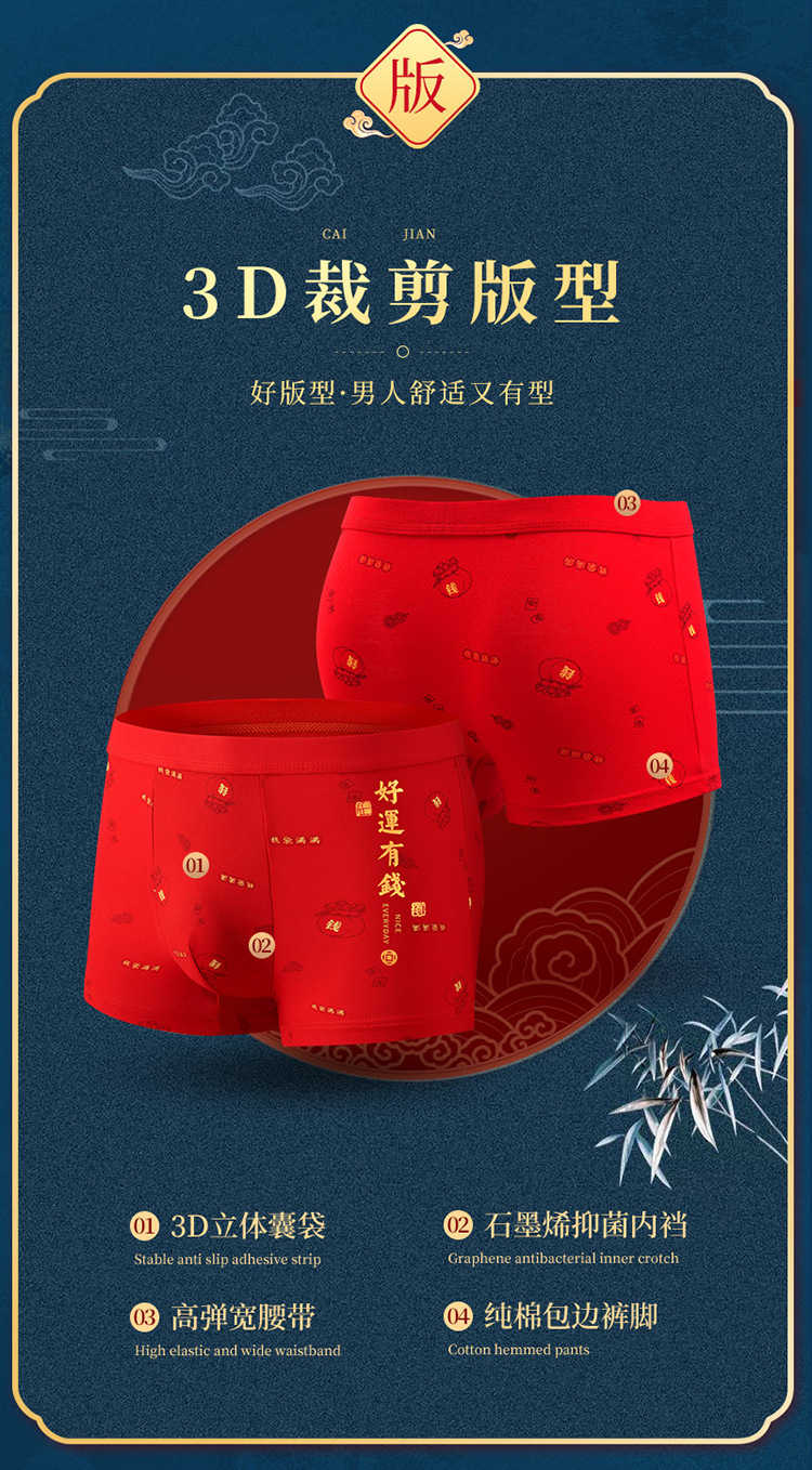 Мужские красные хлопковые трусы-боксеры на год рождения, большой размер, с антибактериальной вставкой, подходят для празднования Нового года и свадеб, класс 7А.