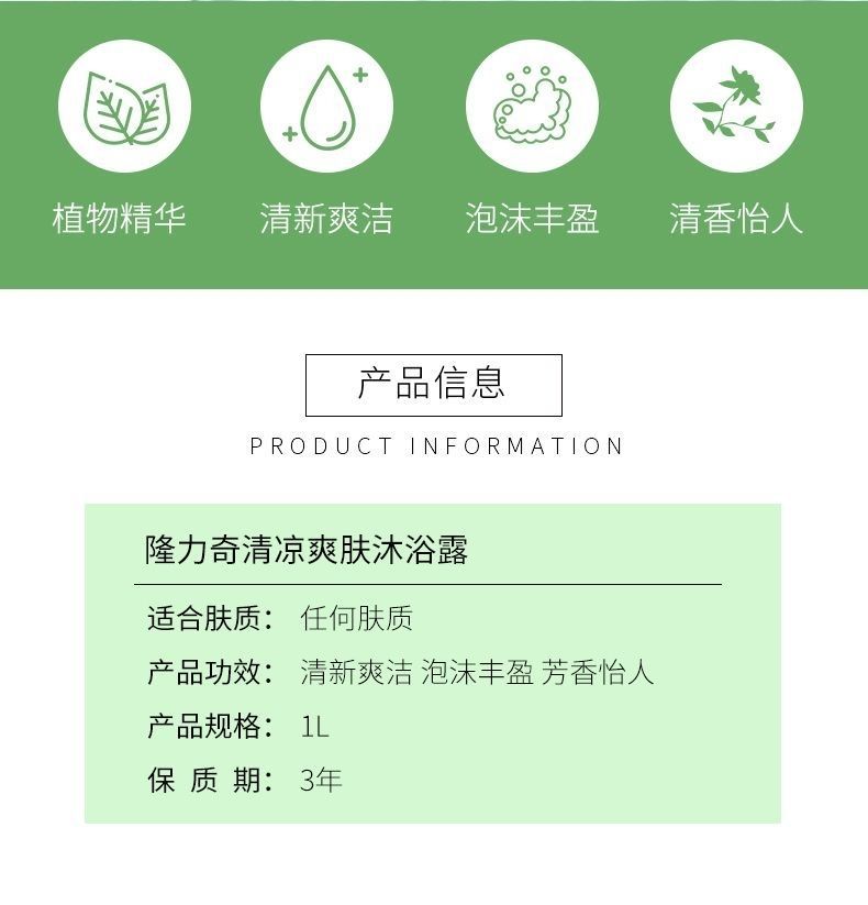 隆力奇薄荷沐浴露持久男女留香润肤通用家庭装大容量大瓶保湿清凉