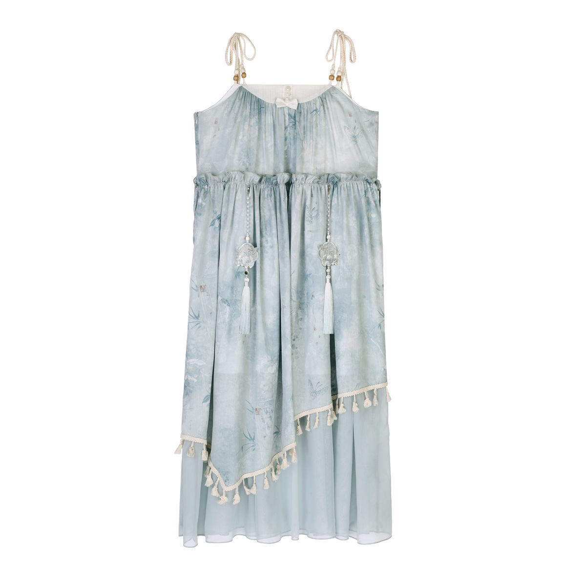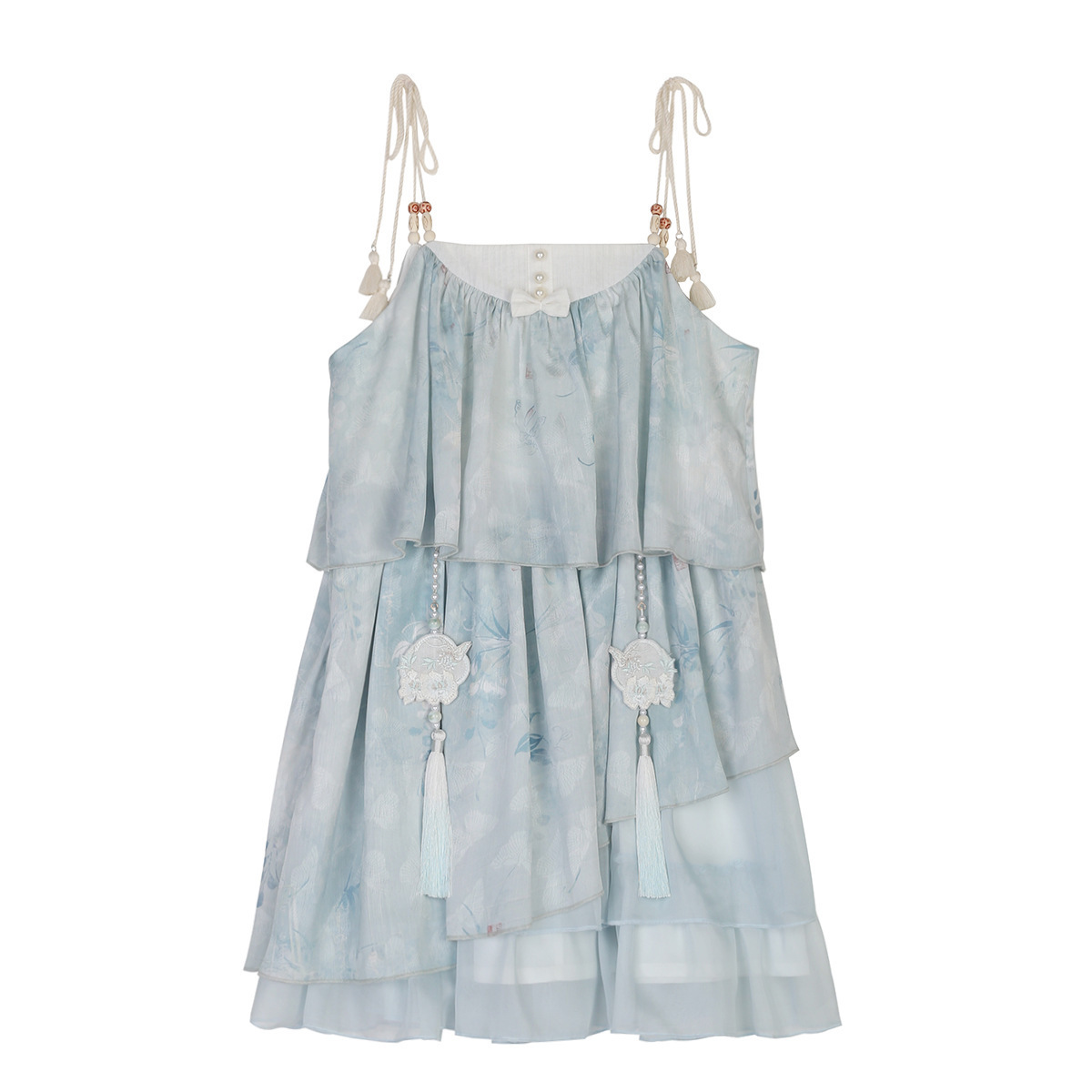 Комплект: платье с лямками и шаль в новом китайском стиле с элементами ханьской культуры, оригинальный дизайн 2026 года, вдохновленный морской солью, для женщин, модель 7131.
