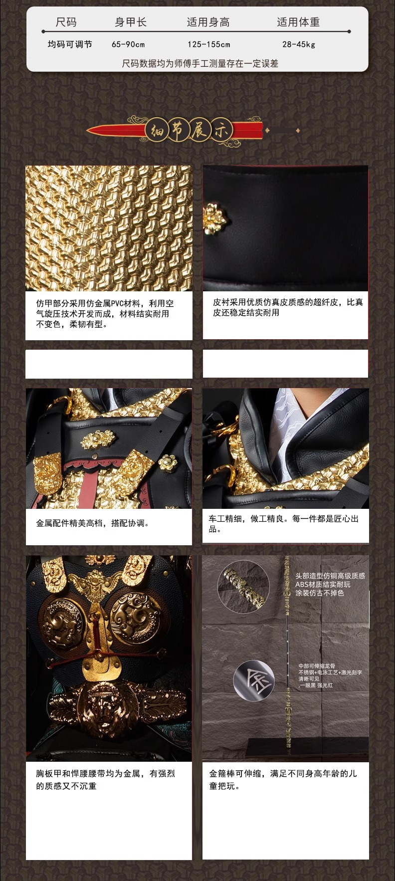 Детский набор доспехов Вуконг «Золотая броня»; Детский набор брони Black Armor Wukong; Детский комплект брони Вуконг «Золотая броня»; Черная броня Детский полный комплект брони Вуконг