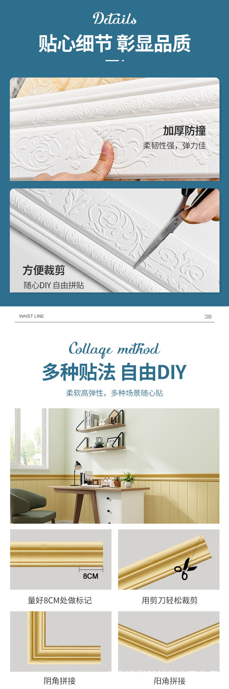 Литера талии белого цвета; Литера талии серебристо-серый; Литера талия медного цвета; Литера талии золотого цвета; Литера талии золото; Резная линия талии белого цвета; Резная линия талии серебристо-серый; Резная линия талии медного цвета; Резная линия талии золотого цвета; Резная линия талии золото; верхний угловой провод белый; верхний угол серебро; Верхняя угловая проволока медного цвета; верхний угол золотого цвета; угловая линия с золотым верхом; Верхний уголок из желтого камня; Линия талии Ruyi с одним цветком белого цвета; Линия талии Ruyi с одним цветком, серебро; Одиночный цветок Ruyi талия медного цвета; Линия талии Ruyi с одним цветком золотого цвета; Одиночный цветок Ruyi талия золото; Одиночный цветочный узор из желтого камня Ruyi; Двухрядная одинарная цветочная линия талии белого цвета; Двухрядная одинарная цветочная линия талии золотого цвета; плинтус белый; Плинтус черный; Плинтус медного цвета; Плинтус золотого цвета; Плинтус с рисунком желтого камня; Талия без цветов белая; Двойная цветочная талия белого цвета; Маленькая талия белая; Маленькая талия золотого цвета.; Маленькая линия талии медного цвета; Маленькая талия с рисунком желтого камня.; Индивидуальные стили и цвета, принимаются отдельно и отправляются случайным образом.
