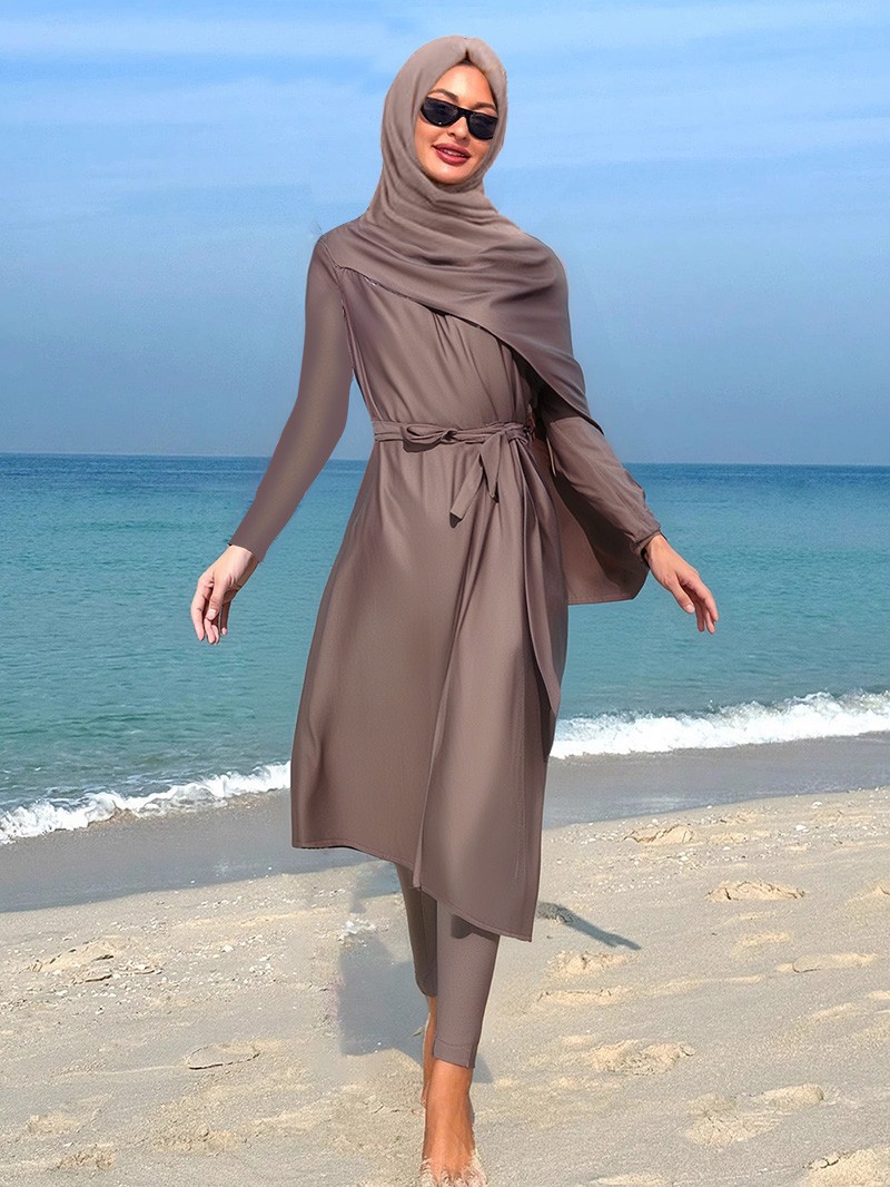 2025 новый европейский и американский мусульманский купальник женский трансграничный халат AliExpress простой базовый цвет сплошной цвет пляжная юбка