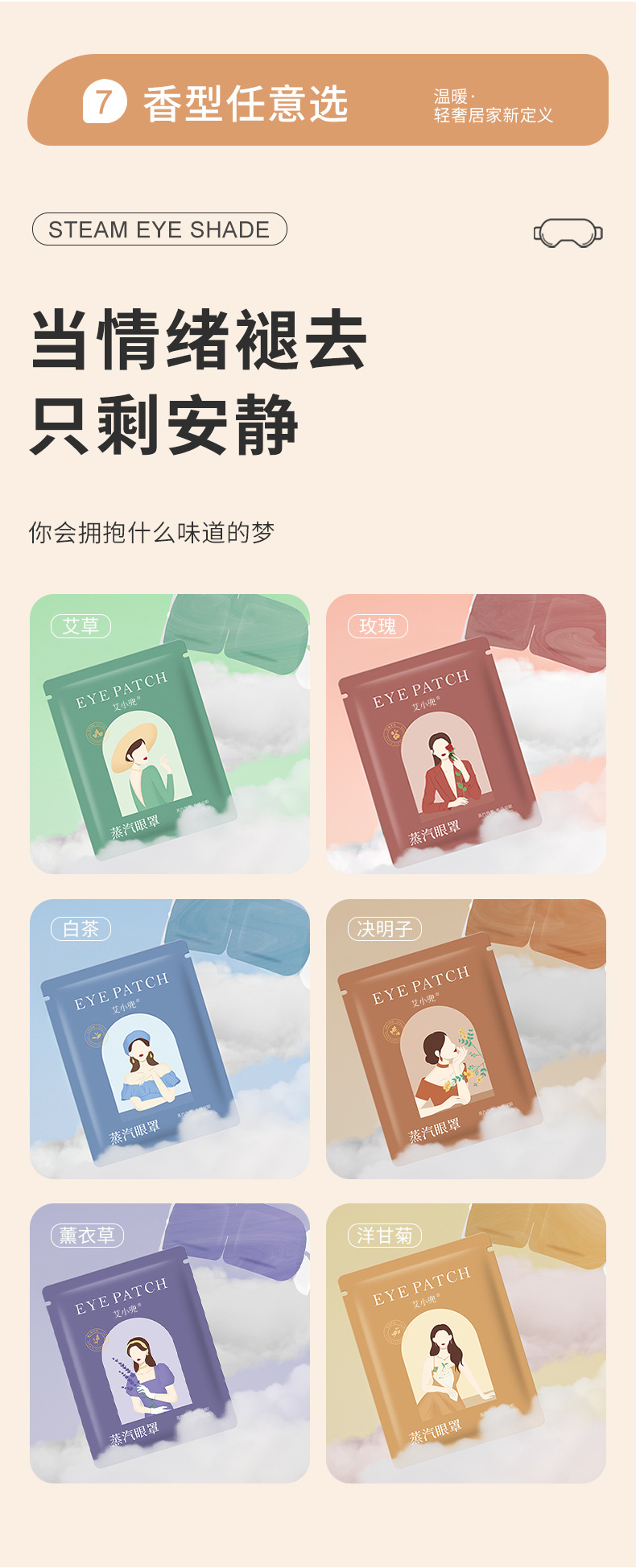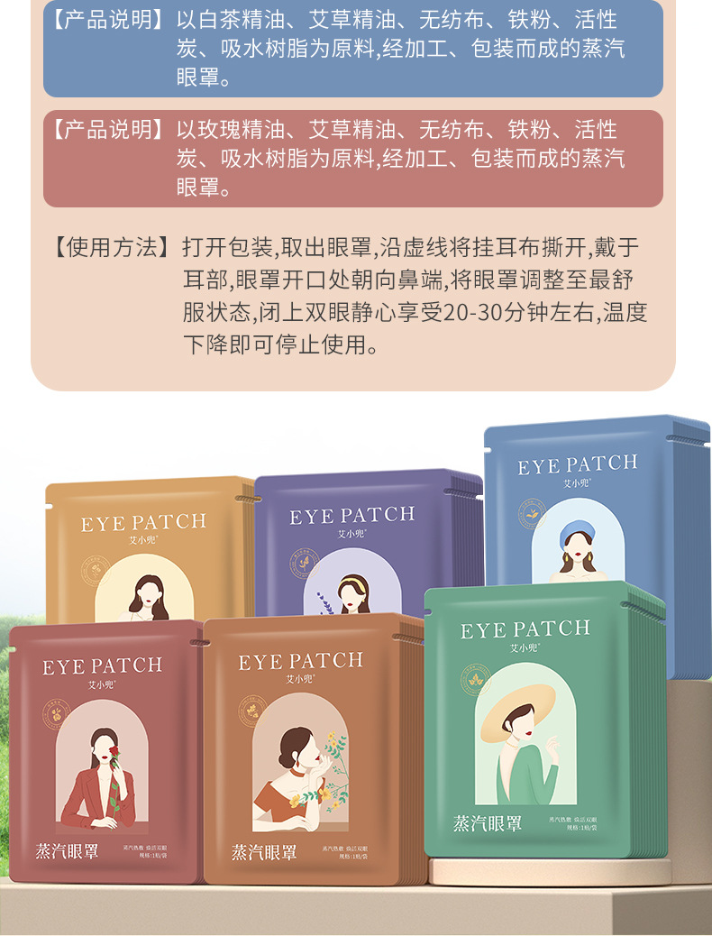 Паровая маска для глаз Bull 1 пластырь/пакет; Розовая паровая маска для глаз 1 пластырь/пакет; Паровая маска для глаз с ромашкой 1 пластырь/пакет; Лавандовая паровая маска для глаз 1 пластырь/пакет; Паровая маска для глаз с белым чаем 1 пластырь/пакет; Паровая маска для глаз Cassia 1 пластырь/пакет