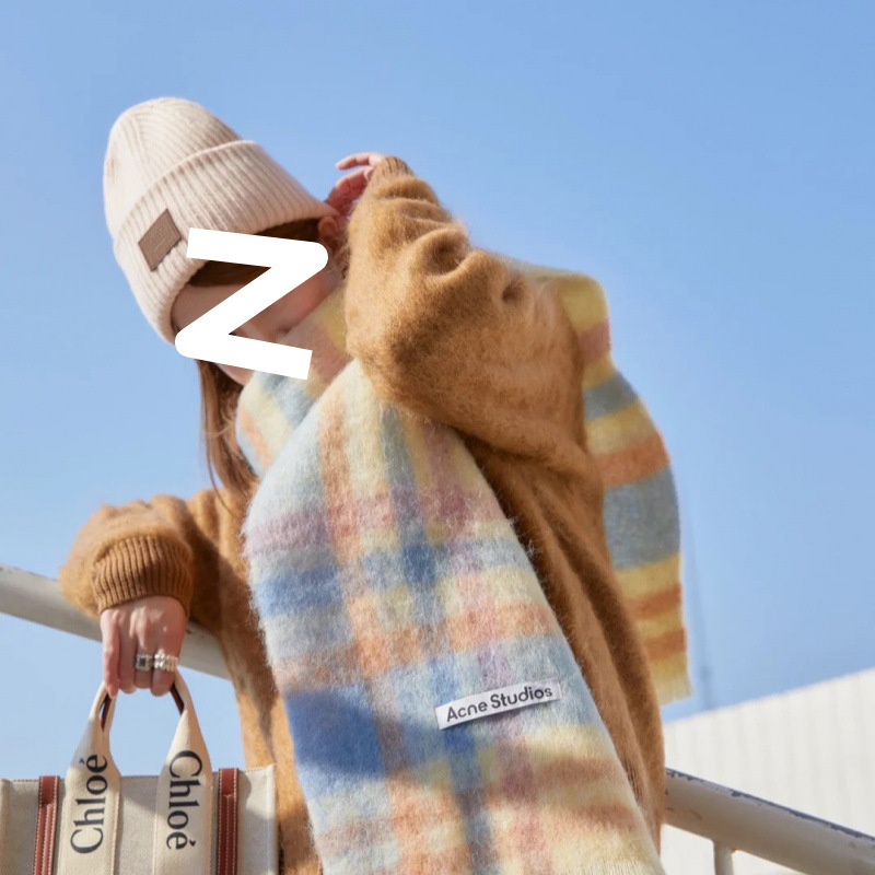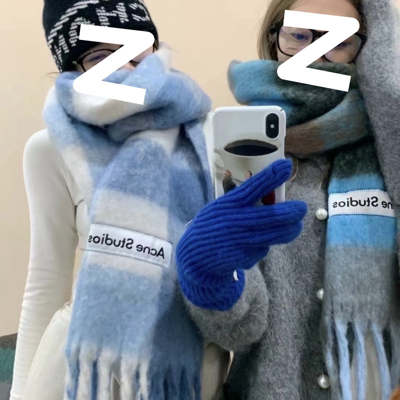 Осенний и зимний новый утолщенный цветный шарф в клетку цвета радуги