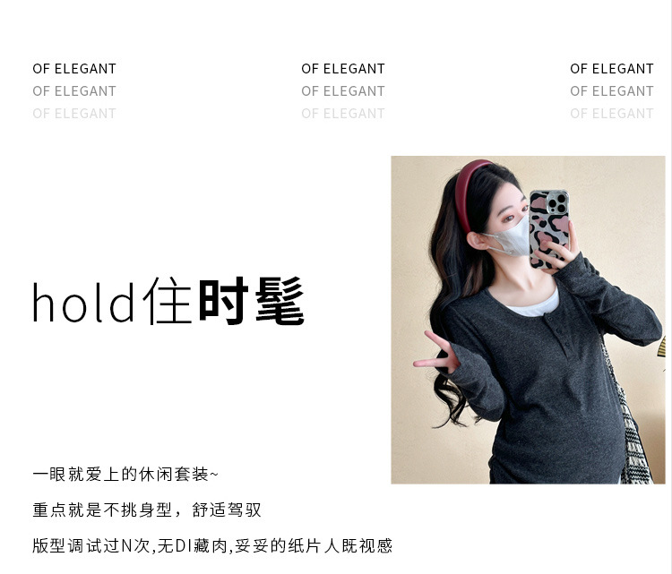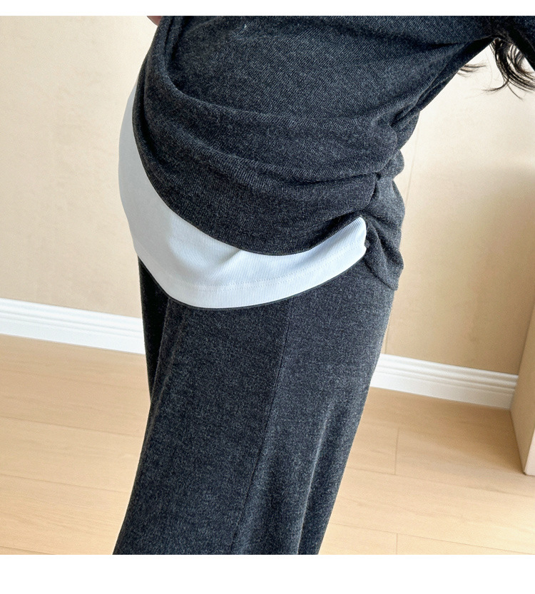 Комплект для беременных 2025: осенний, в корейском стиле, повседневный шик, стройнящий, высокоэластичный, имитация двухслойного топа + регулируемые широкие брюки, трендовый