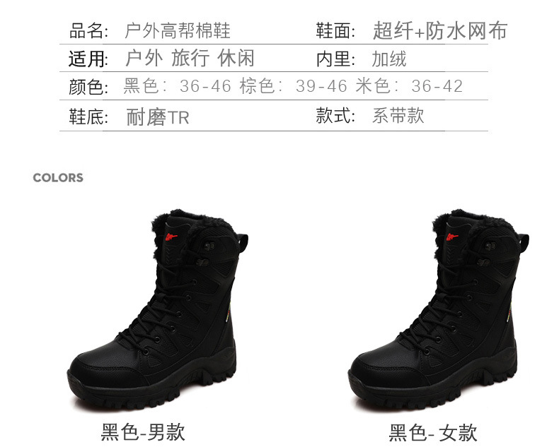 2025 Amazon AliExpress на открытом воздухе снежные сапоги большого размера зимняя обувь пара хлопчатобумажная обувь для боевых сапог