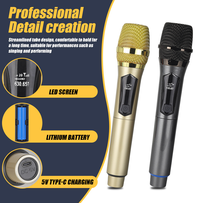 Трансграничный беспроводной микрофон ручной зарядки один перетаскивание двух микрофонов на открытом воздухе