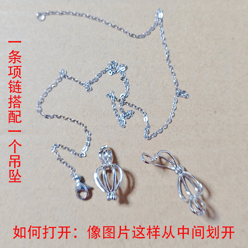套装:把珍珠取出后不用打孔直接放进项链的吊坠里面,包装颜色随机