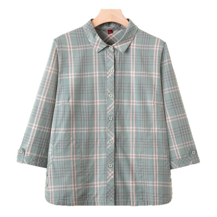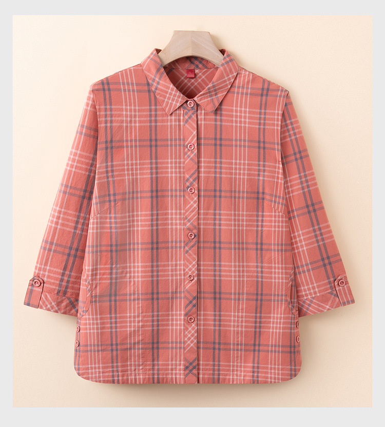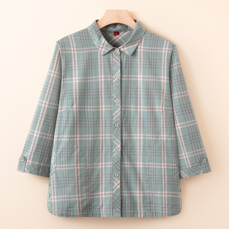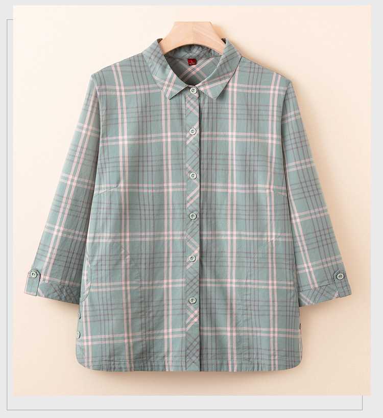Новая коллекция весна-осень 2025: модные рубашки больших размеров для женщин среднего возраста, стильные топы для женщин среднего и старшего возраста, клетчатые блузки.