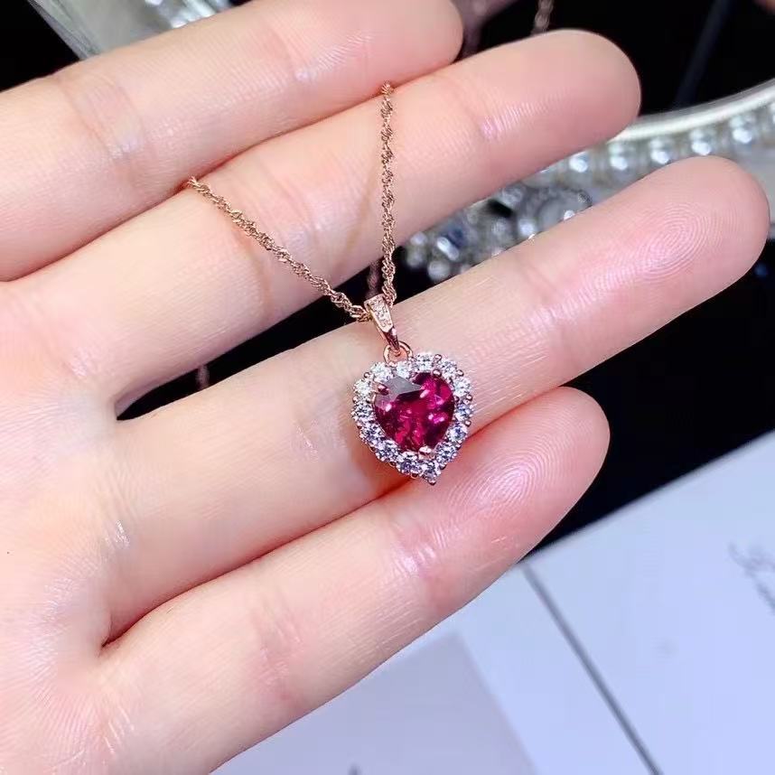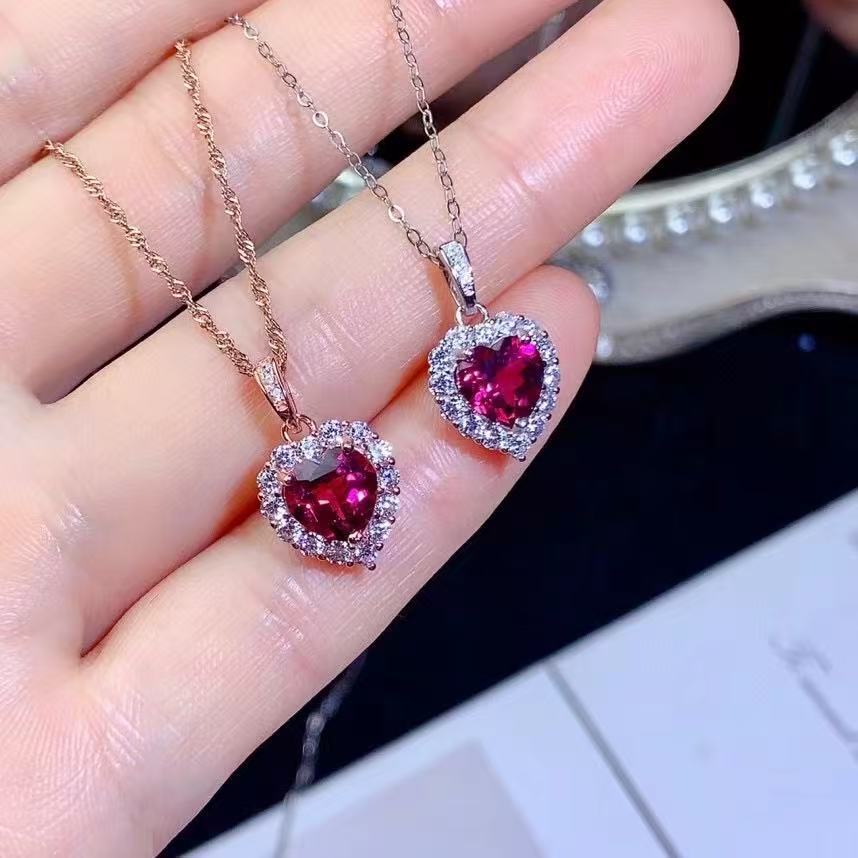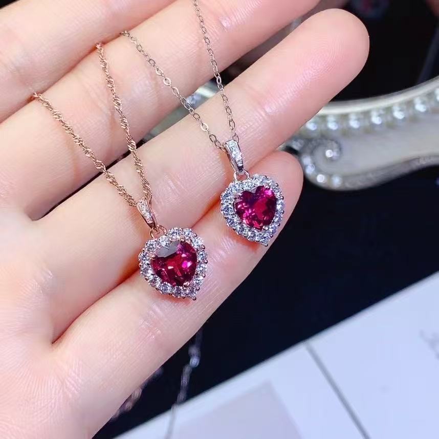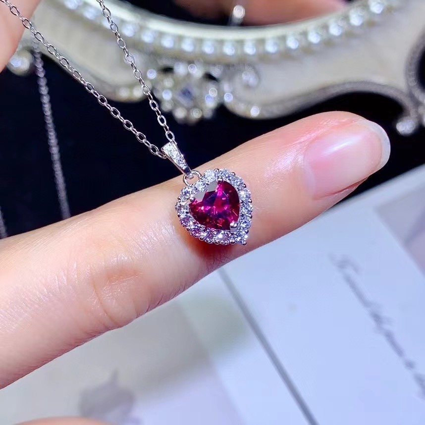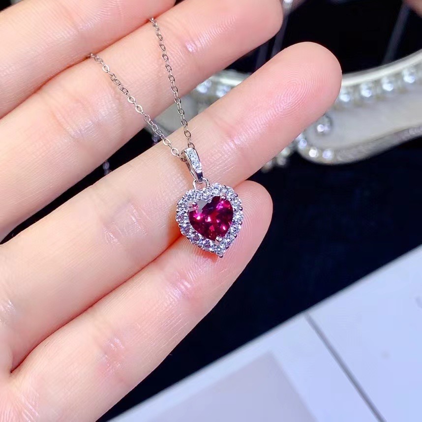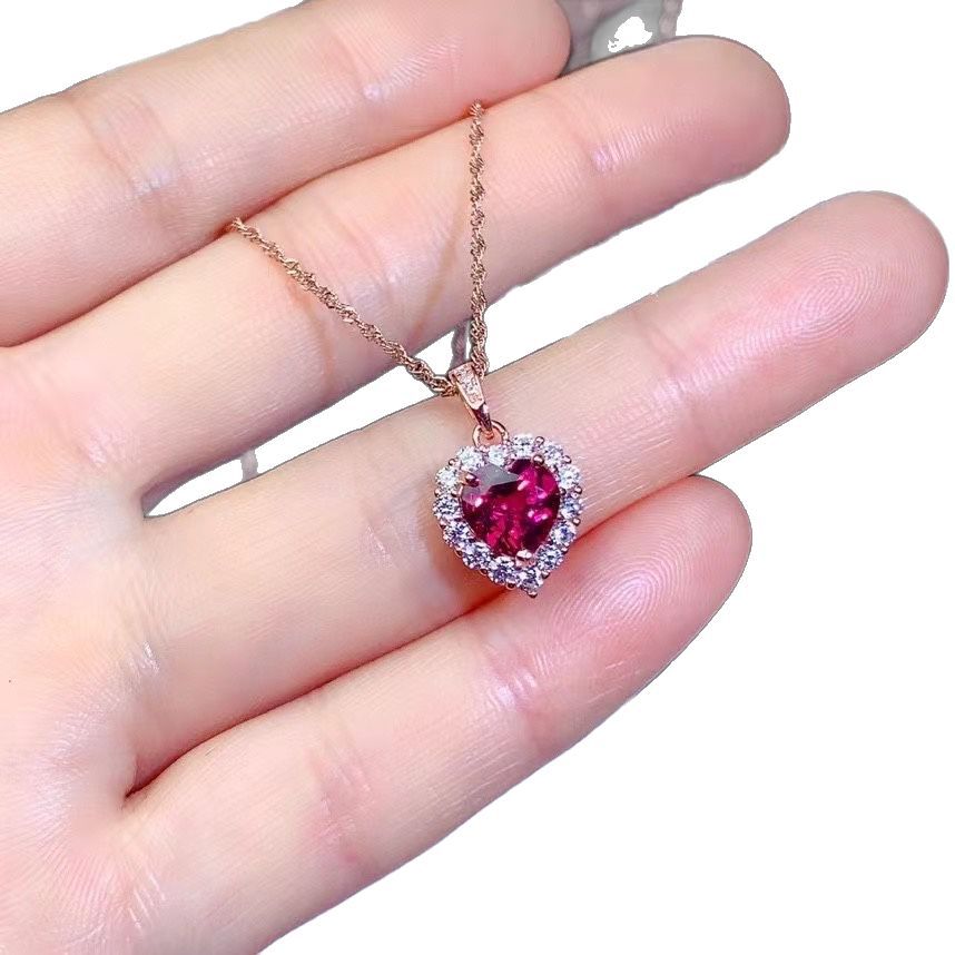 Оптовая продажа: Новое поступление! Кулон из натурального магнетита и граната, серебро S925, в форме сердца, легкий люкс, универсальное ювелирное изделие с драгоценным камнем, цепочка на ключицы для женщин
