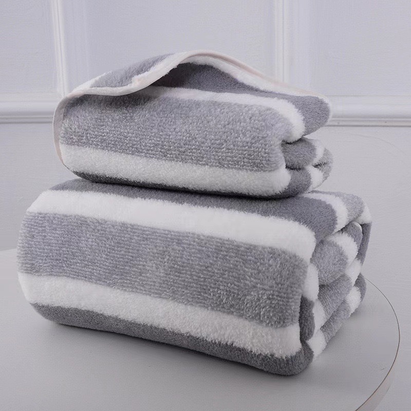Трансграничные новые коралловые бархатные полотенца полотенца большие широкие полоски утолщенные домашние полотенца мягкие и удобные полотенца набор