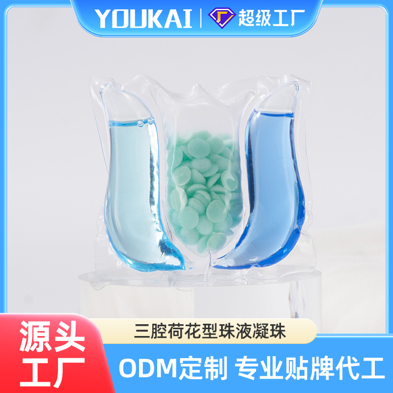 Гуандун Юйкай: индивидуальные трехкамерные бусины для стирки с антибактериальным эффектом, удалением клещей и ароматом, 13 г, производство ароматов, ODM/OEM.