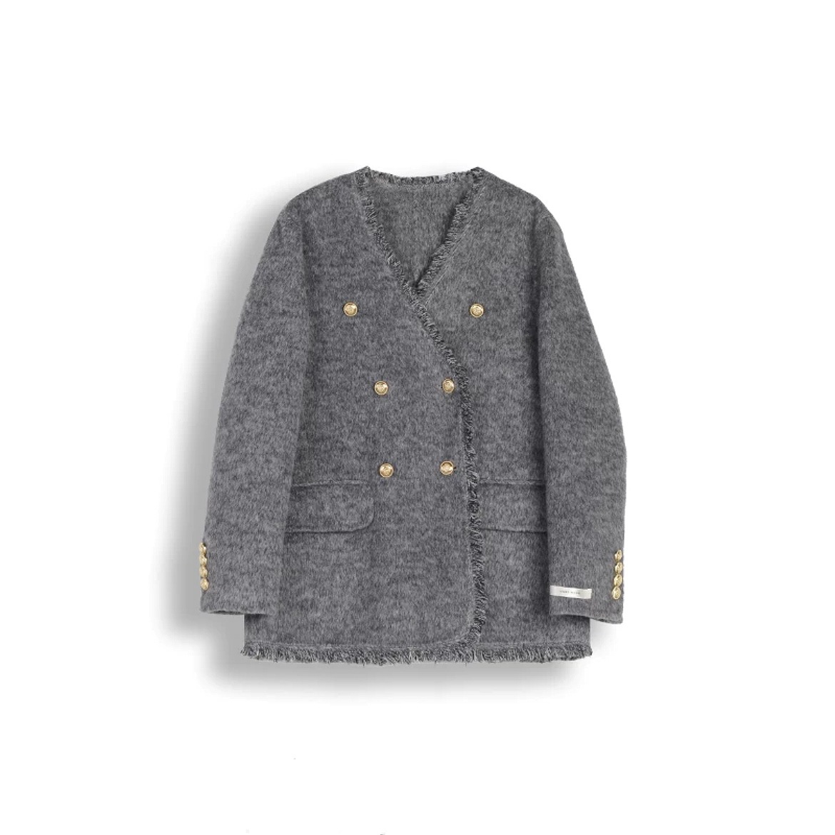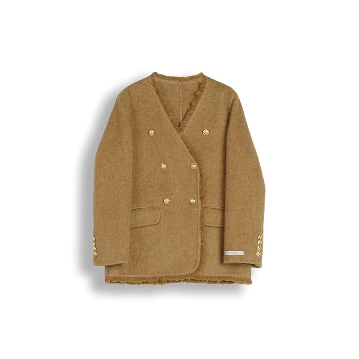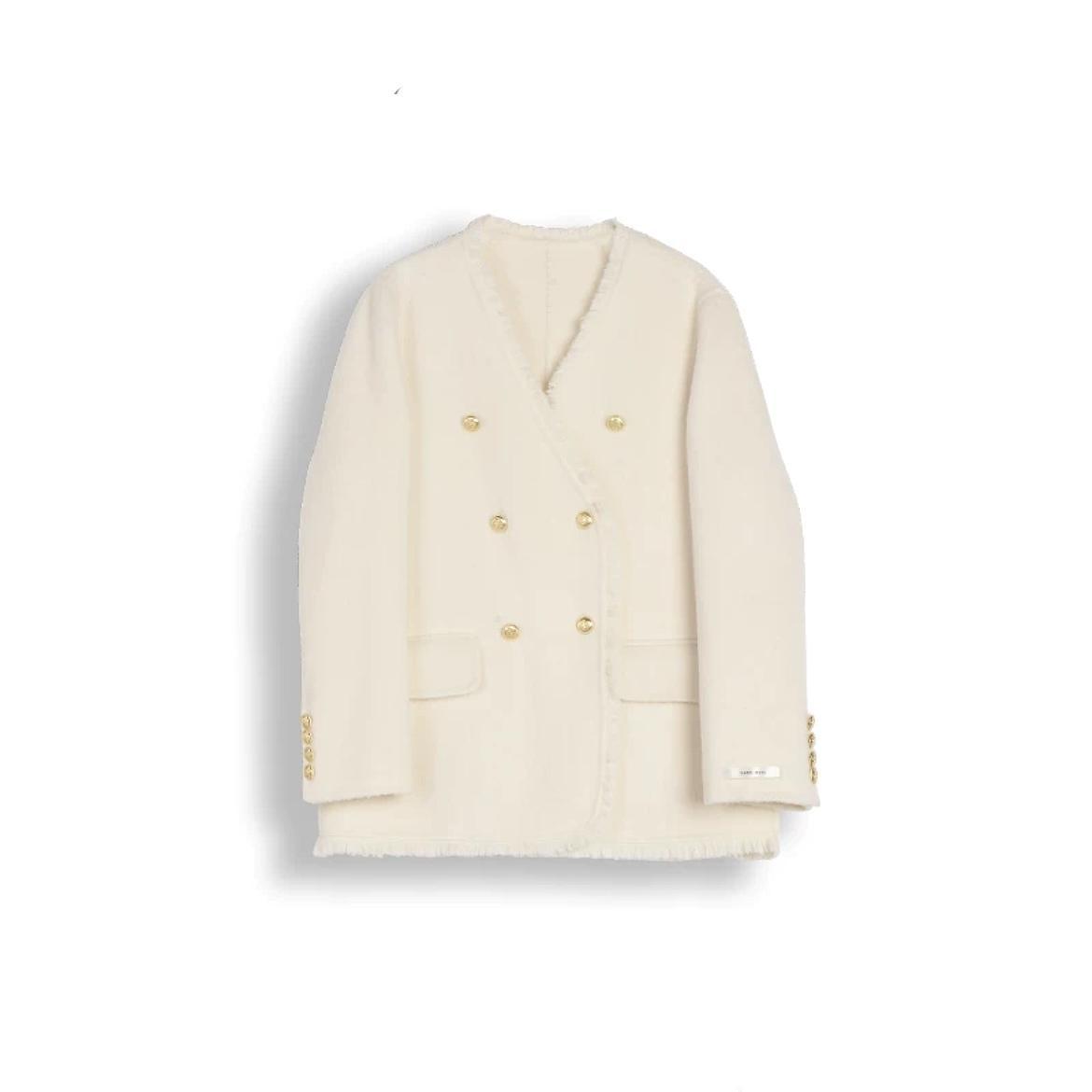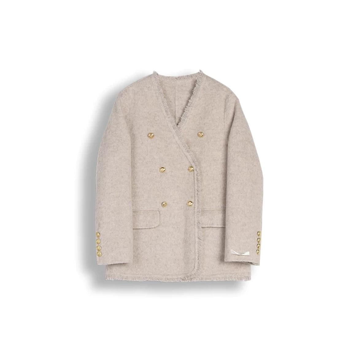 2025 новая средняя длинная двухсторонняя шерстяная пальто женская корейская версия свободного осеннего и зимнего дикий овсяного цвета кремовый белый