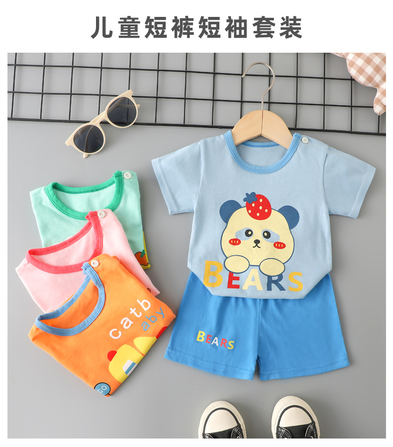 Детский комплект с короткими рукавами Летняя хлопчатобумажная детская одежда для мальчиков новая модель для девочек тонкая футболка летняя детская одежда