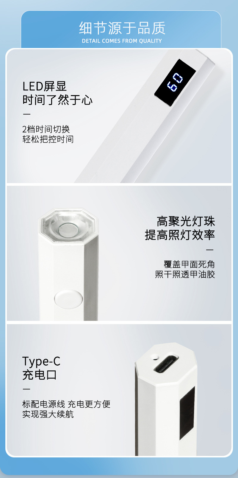 Портативная УФ-лампа для ногтей, компактная перезаряжаемая лампа для ногтей с ЖК-дисплеем, мини-фототерапия с концентрированным светом