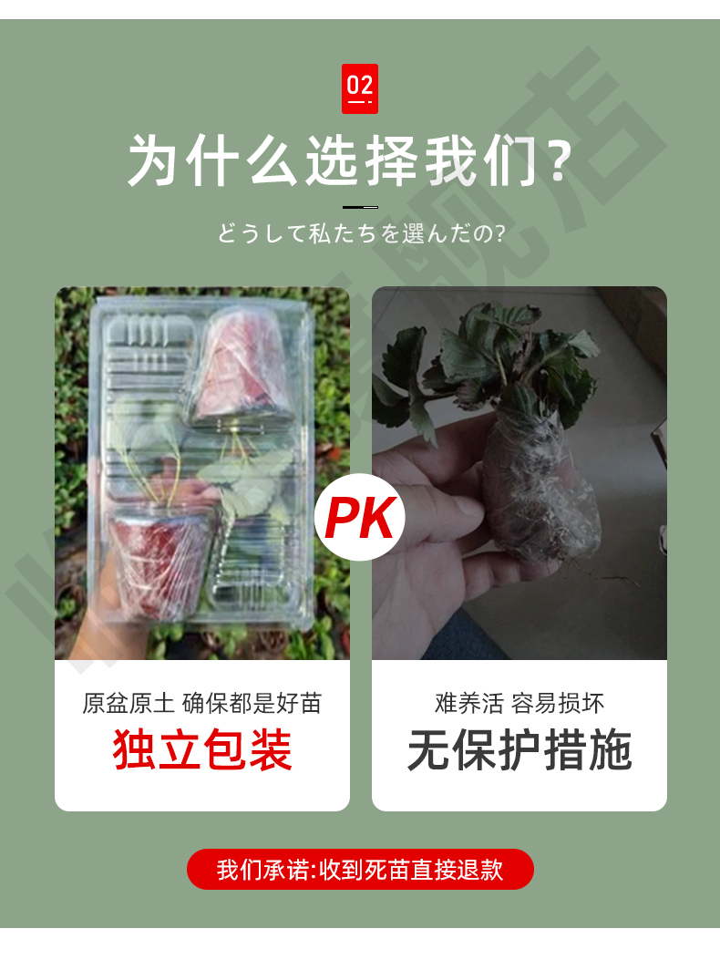 Растениеводственная рассада (поставляется с голыми корнями, завернутыми в питательную почву); Рассада в горшках (семена в питательной чашке); Рассада в горшках (гальванизированная рассада)