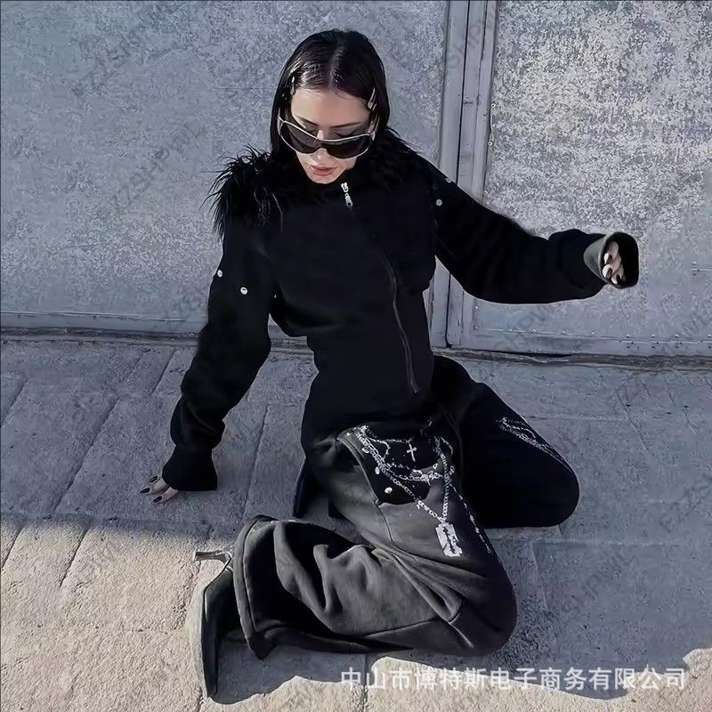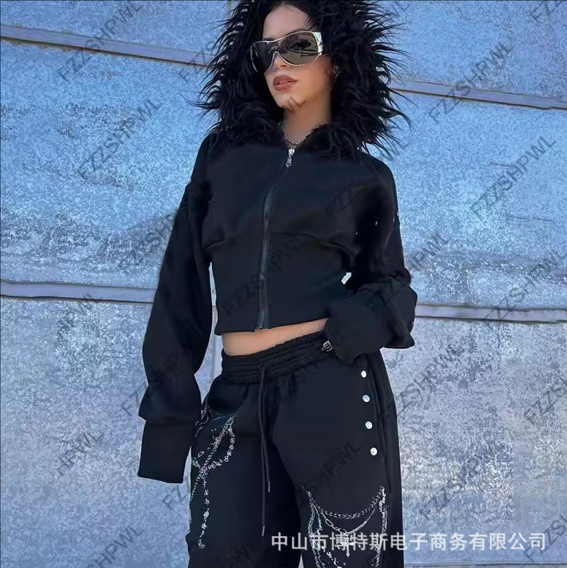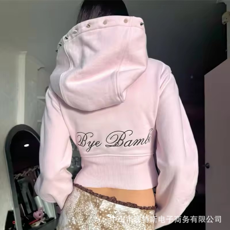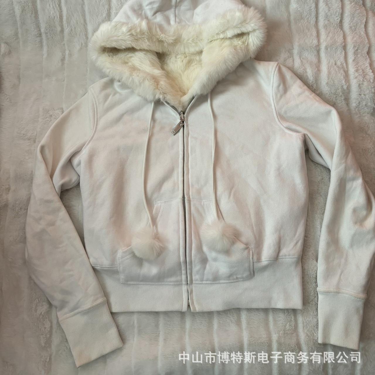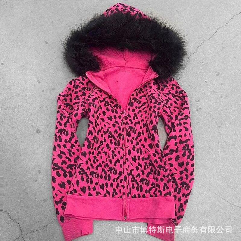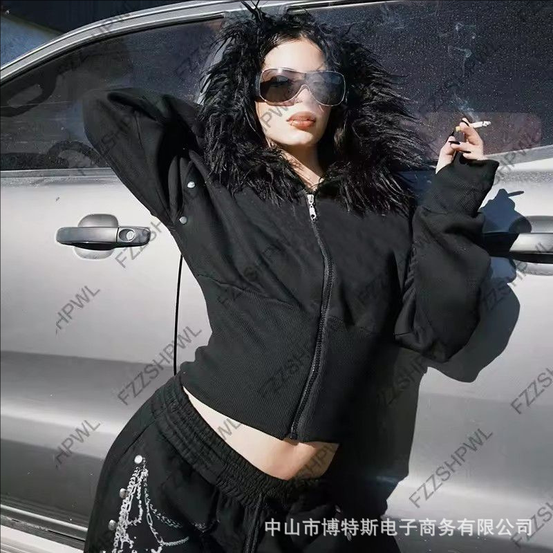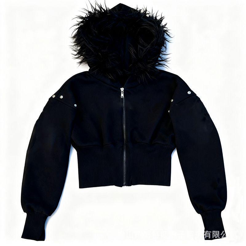 Внешняя торговля американский ретро алфавит вышивка осенний и зимний меховый воротник с капюшоном кардиган свитер топ