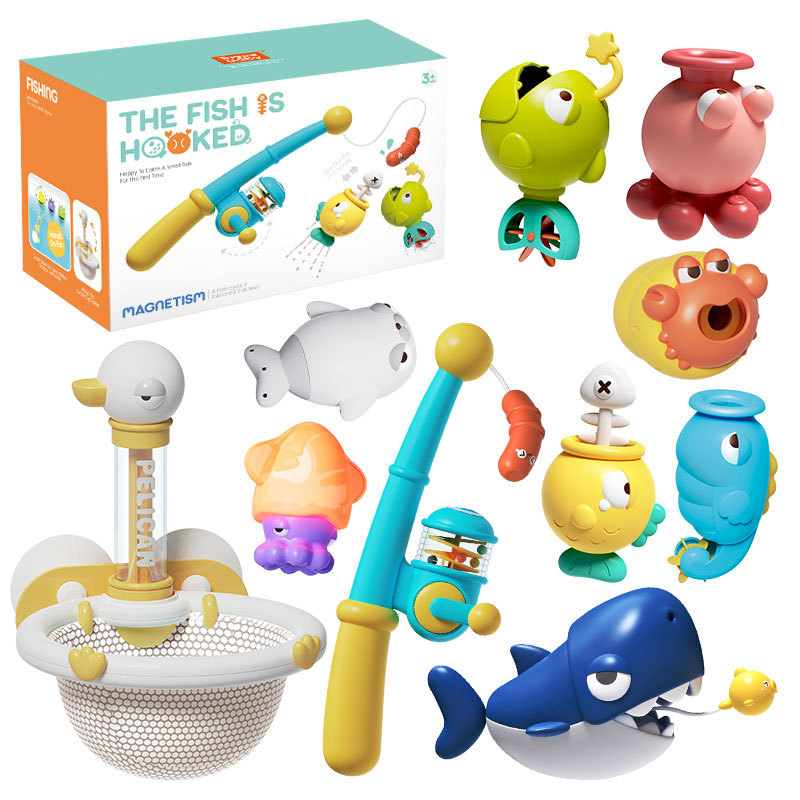 Трансграничная экспортная магнитная рыболовная сеть Amazon для младенцев и детей, морская жизнь, ванна, пузырь, душ, игрушки для ванной комнаты