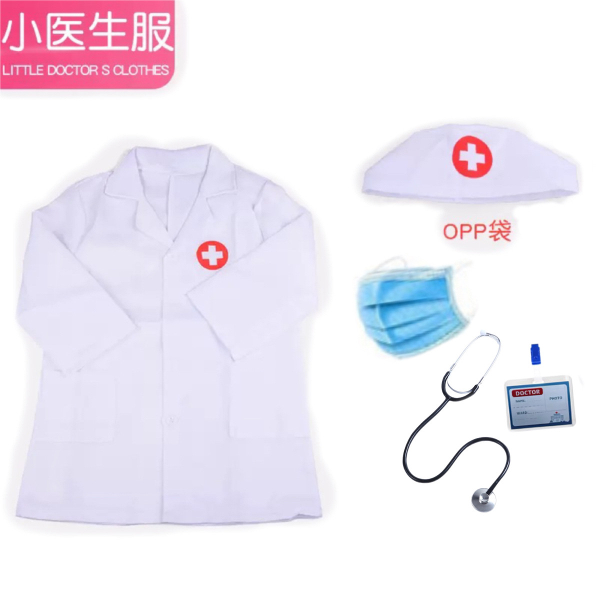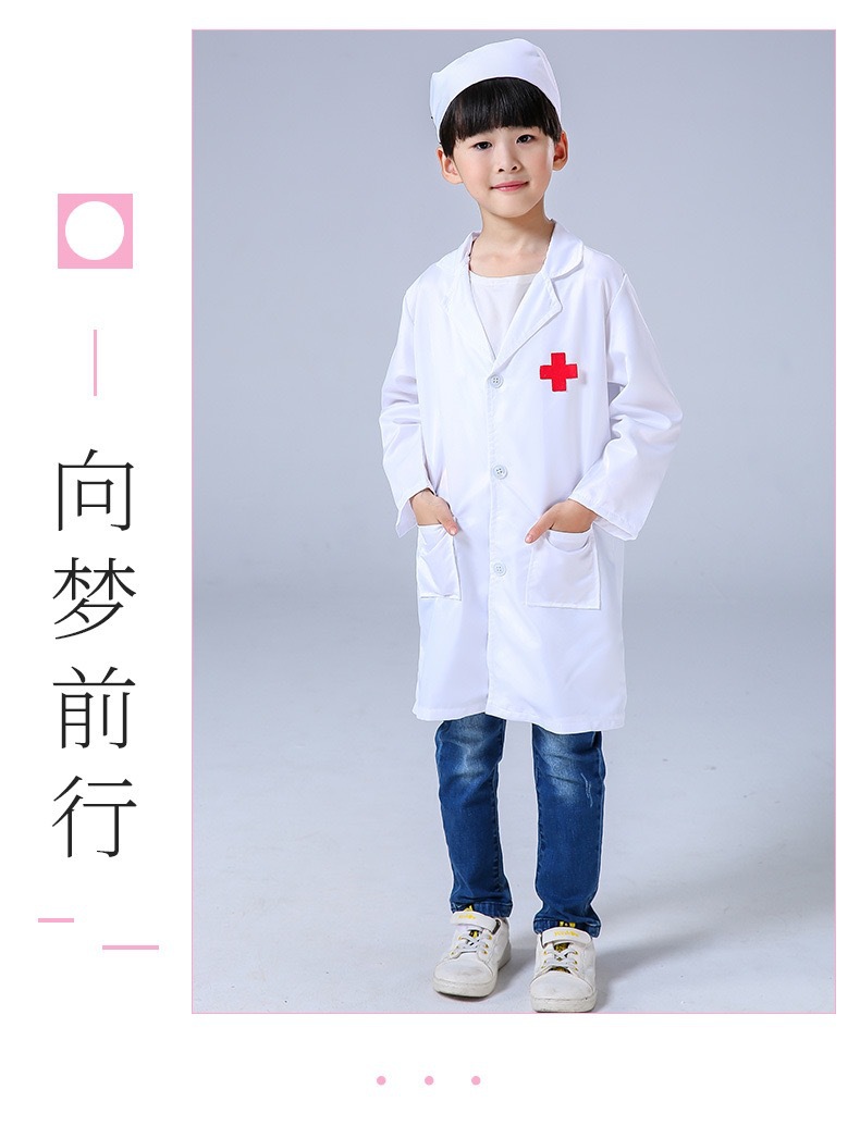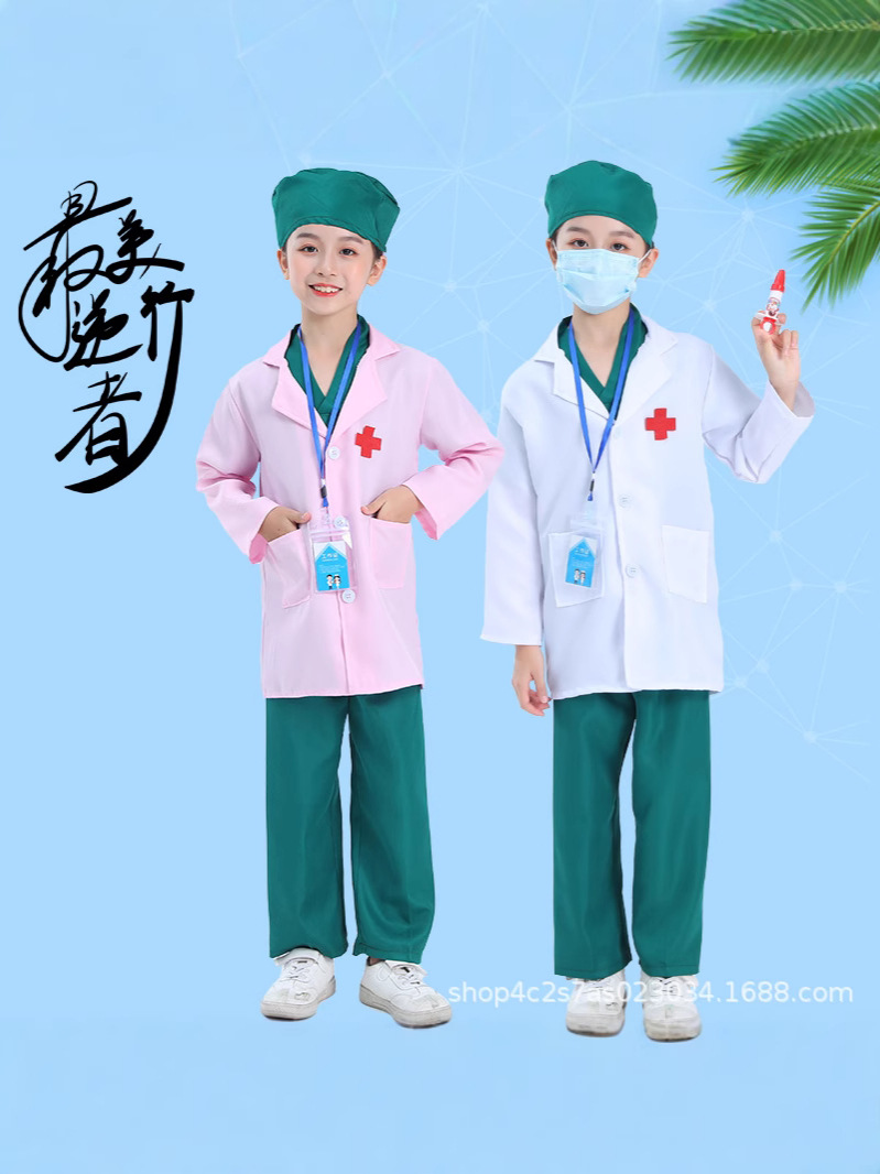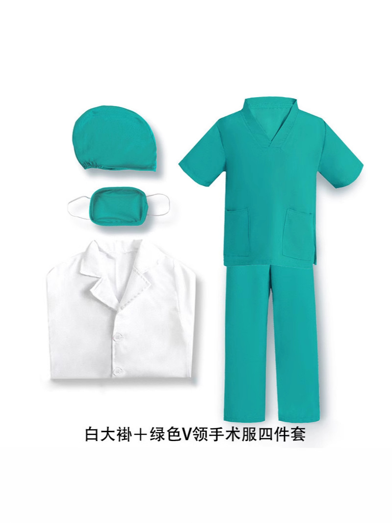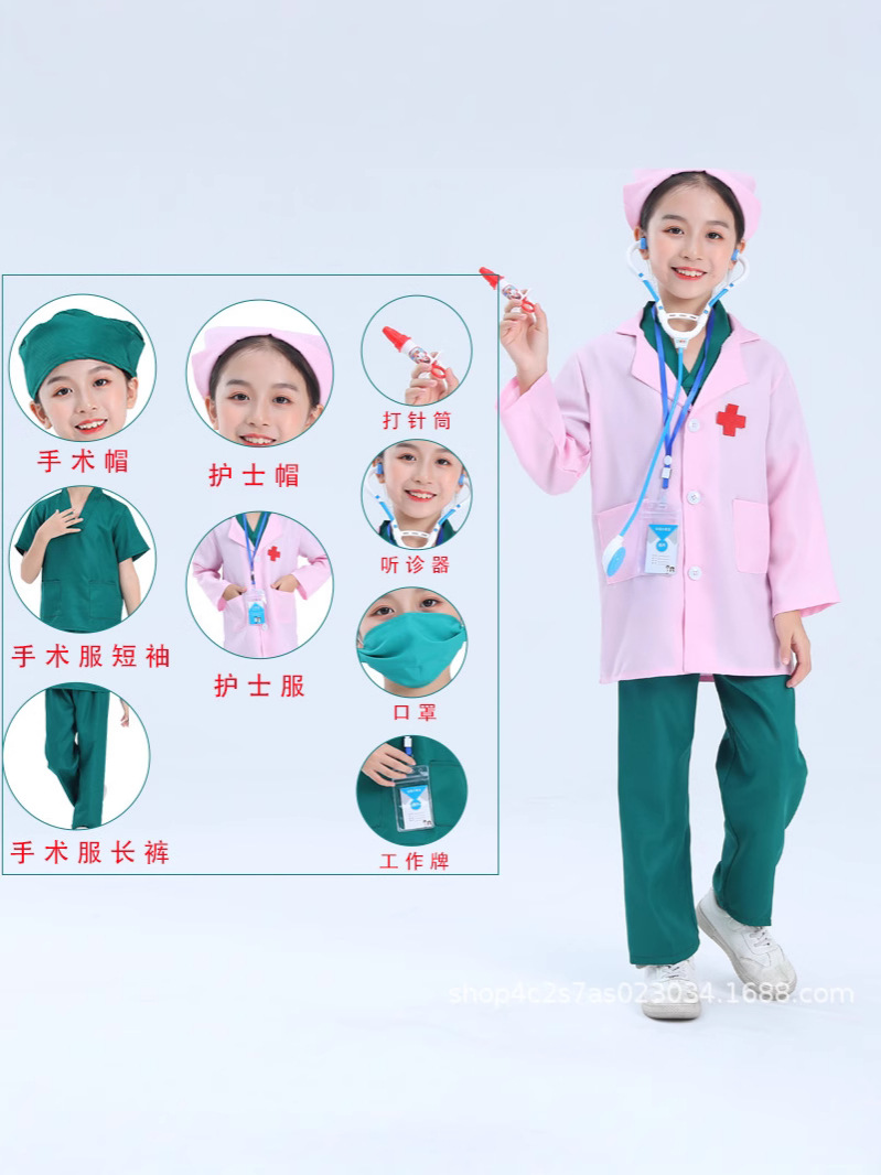доктор; медсестра; зеленый хирургический халат; розовый хирургический халат; Белое пальто с длинными рукавами и плоским ртом.; белое пальто с короткими рукавами; Поддержка индивидуального логотипа; синее хирургическое платье; Белый халат + розовый хирургический халат.; Белый халат + зеленый хирургический халат.; Белый халат + синий хирургический халат.; доктор+игрушки; медсестра+игрушки; Доктор + игрушка набор из семи предметов; Доктор + металлический стетоскоп; Печатный врач + металлический стетоскоп