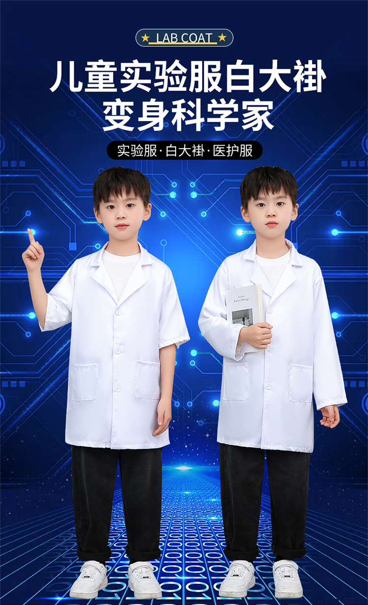 Детская униформа врача, белое пальто, униформа медсестры с длинными рукавами, хирургическая форма, профессиональная одежда для ролевых игр с научным экспериментом