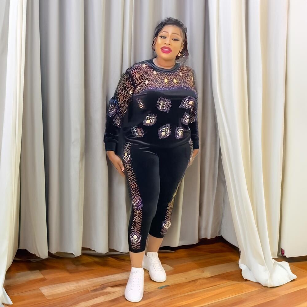 Трансграничная внешняя торговля африканская мода женский костюм тонкая с длинными рукавами эластичный золотой бархат спот оптом