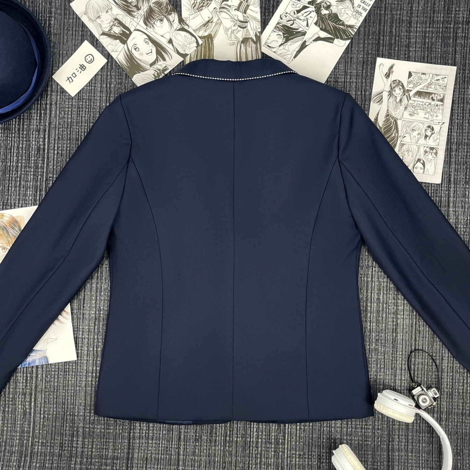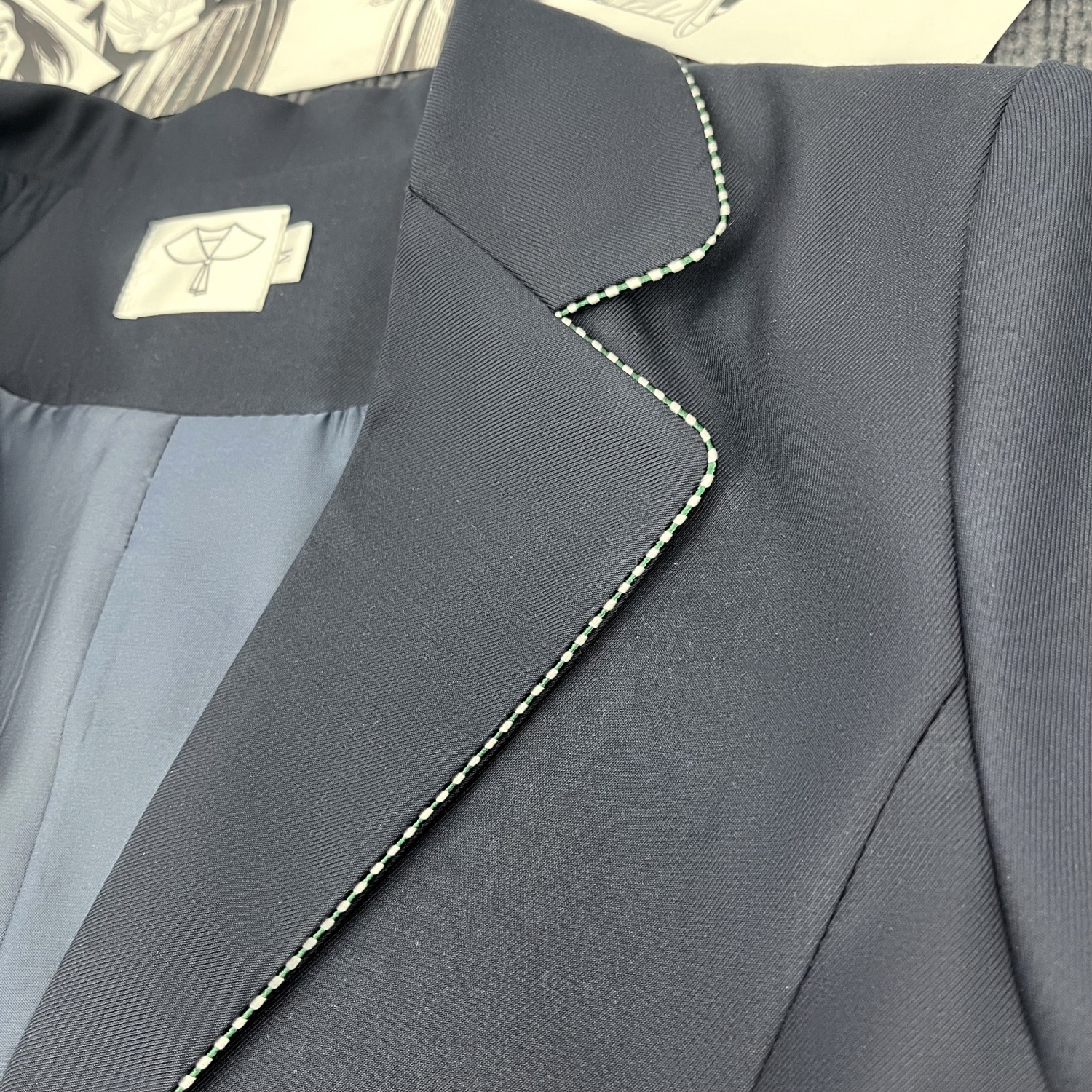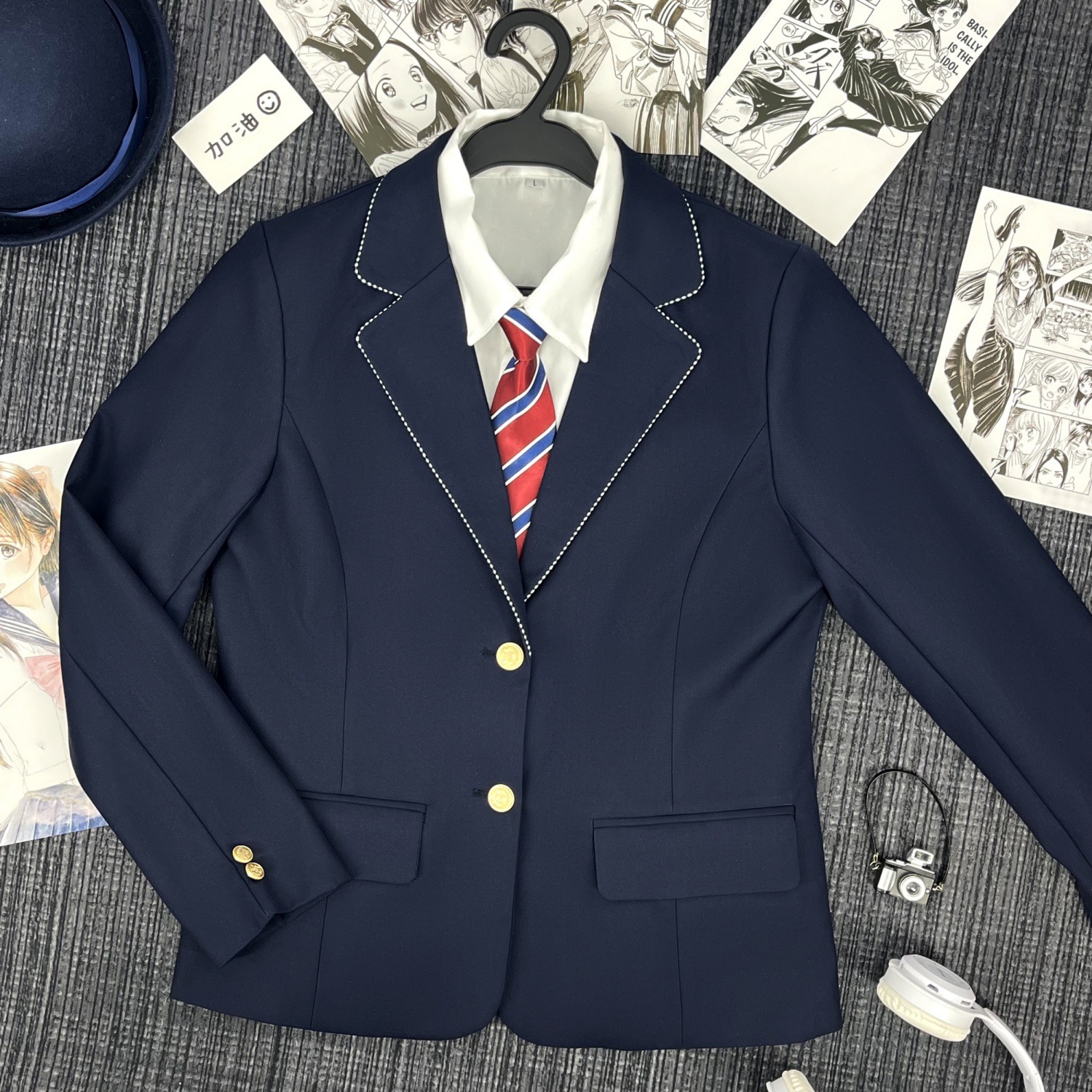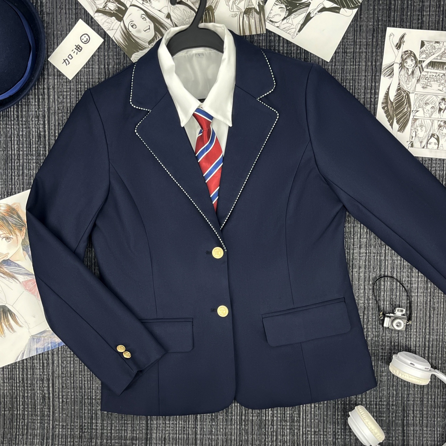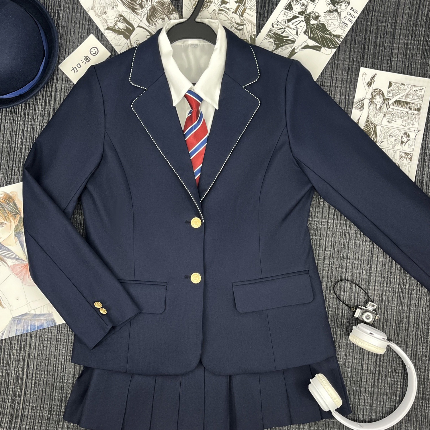 Один костюм в зеленую полоску; Костюм в зеленую полоску + юбка; Костюм в зеленую полоску + женская белая рубашка с длинными рукавами + красно-синий клетчатый галстук; Костюм в зеленую полоску + женская длинная белая рубашка + подходящий галстук + юбка