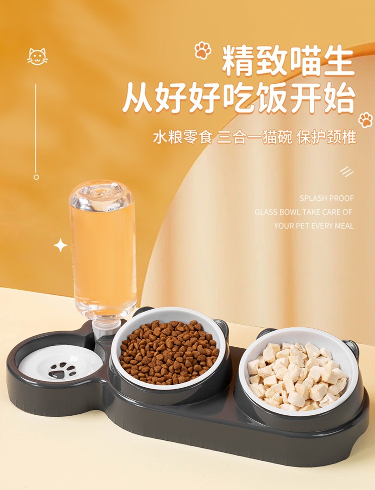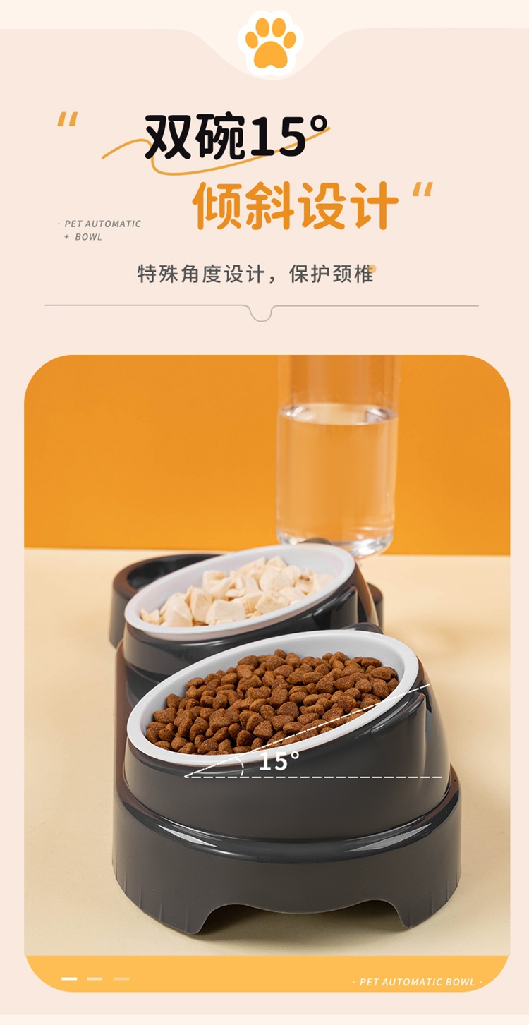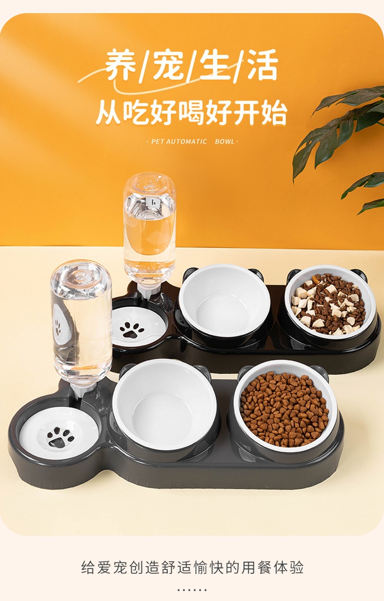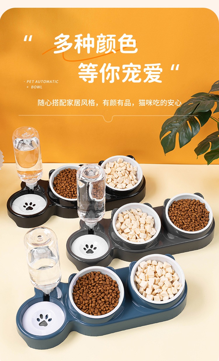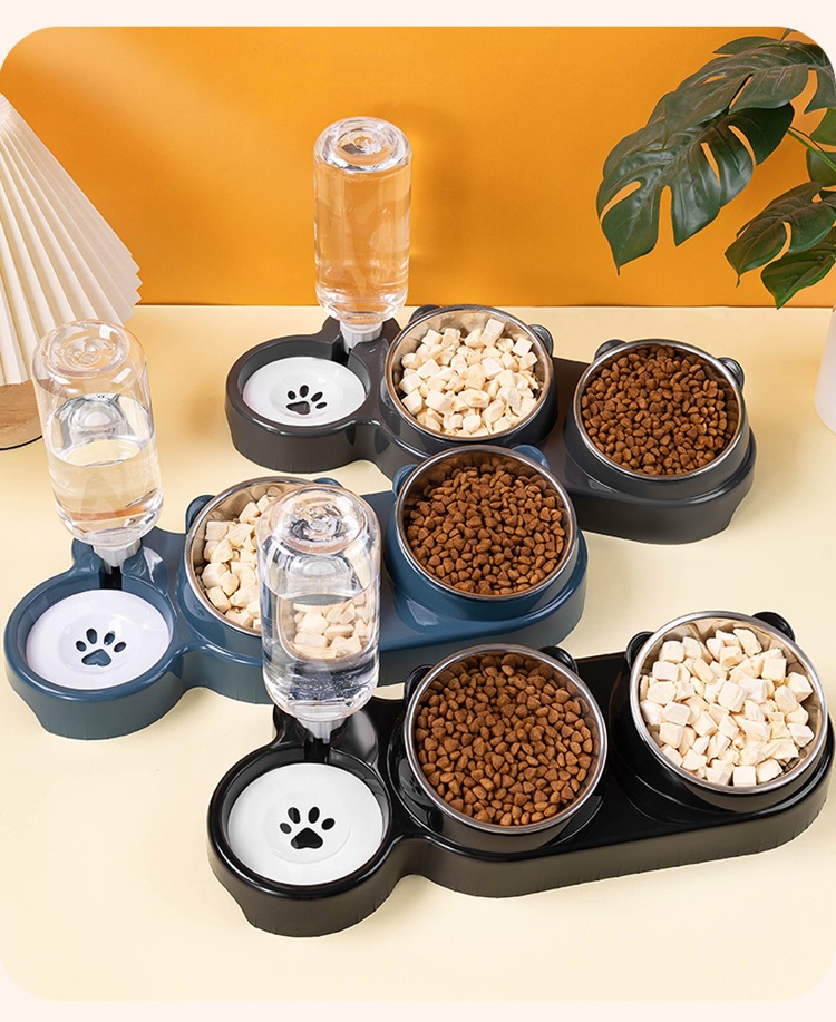 Кошачья чаша Косая собачья чаша Кошачья рисовая чаша Двойная чаша из нержавеющей стали Автоматическая водозапная чаша два в одном кормушка для питья