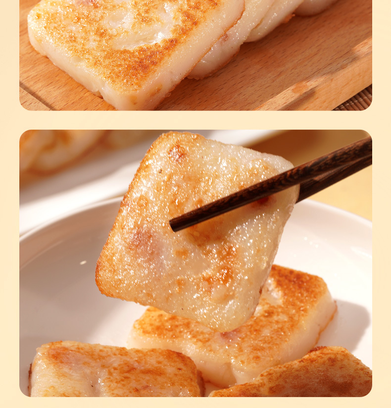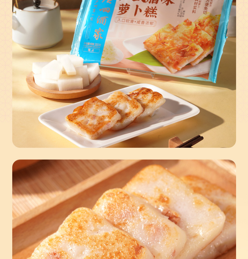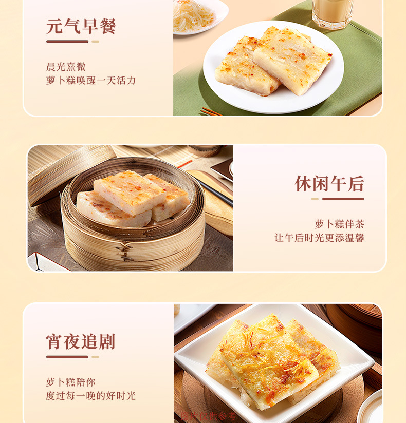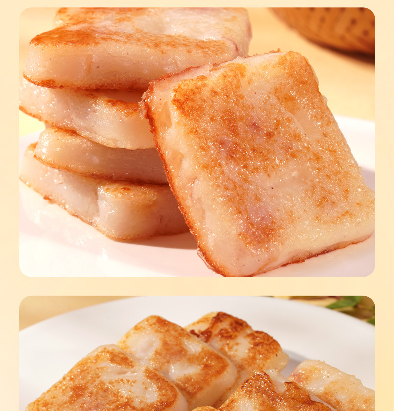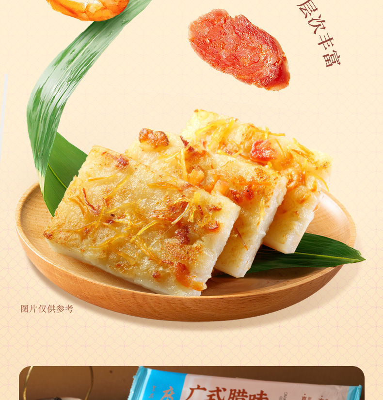 Бесплатная доставка при покупке любых 4 упаковок: традиционные кантонские завтраки от ресторана Гуанчжоу: лепешки с вяленой свининой и редисом, лепешки с водяными орехами, лепешки с таро.