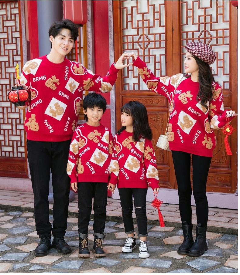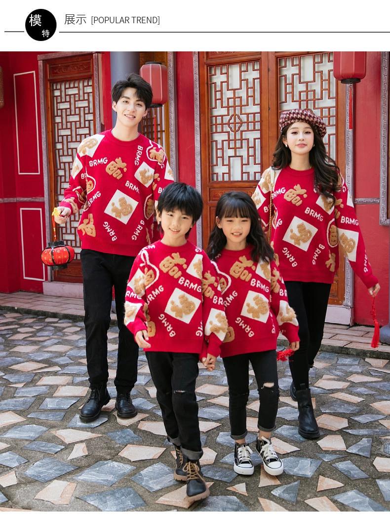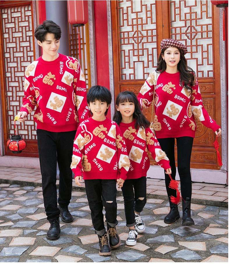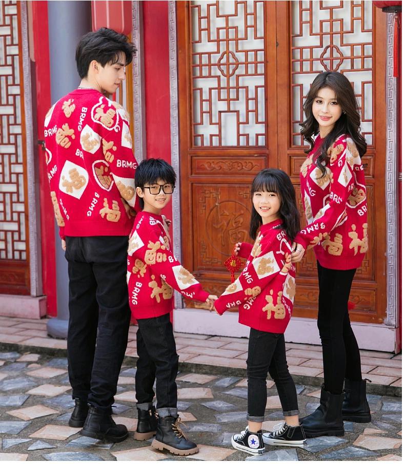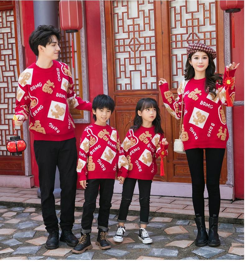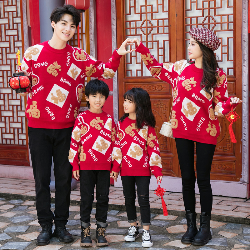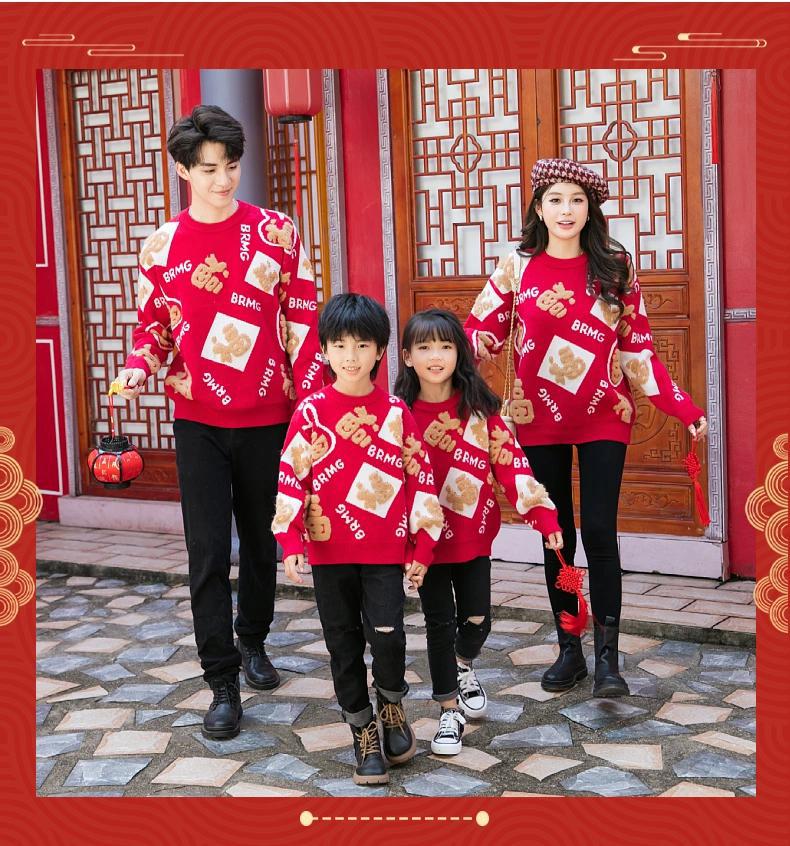 Семейный портрет, утолщенный красный семейный свитер, праздничная новогодняя одежда, одежда для семьи из трех и четырех детей, одежда для пар, семейная одежда