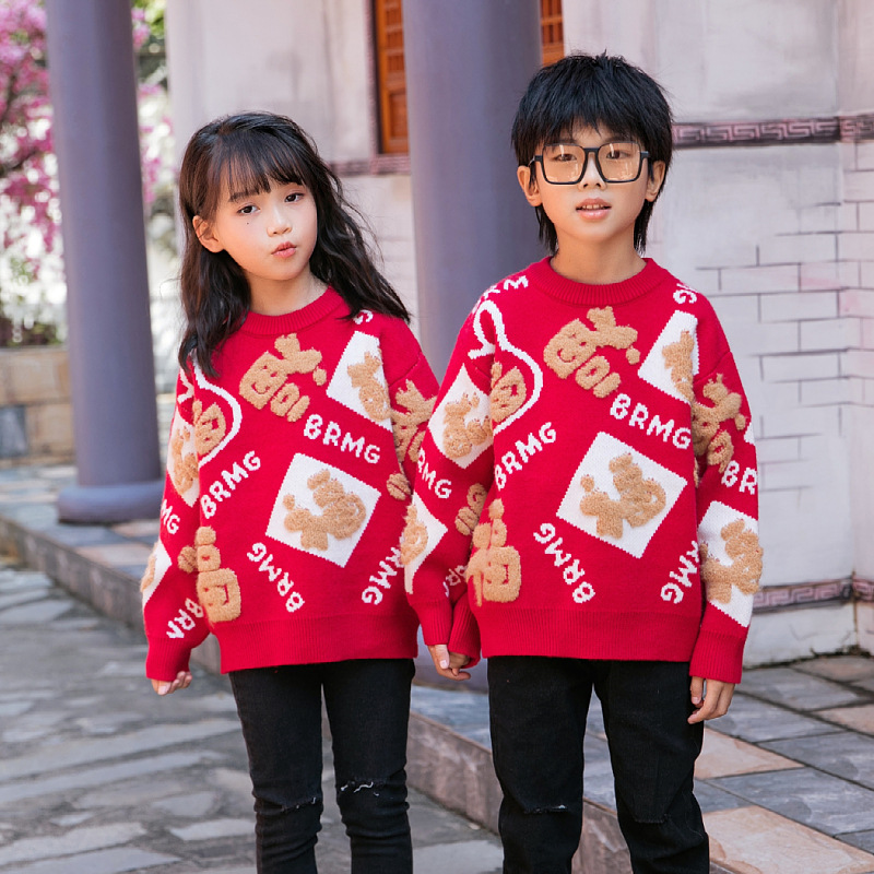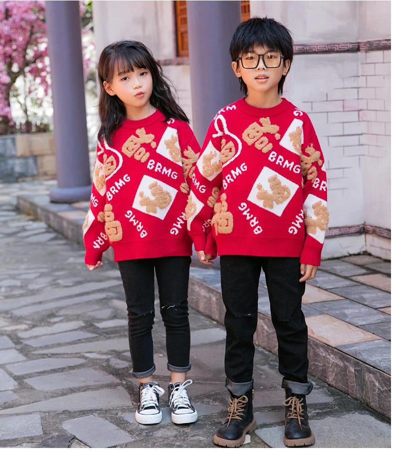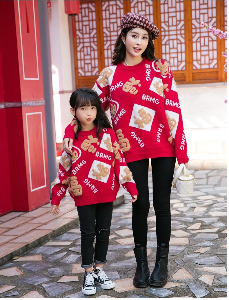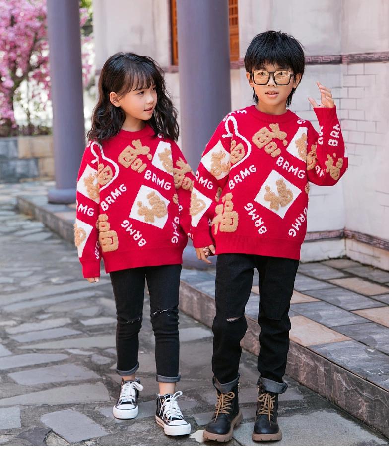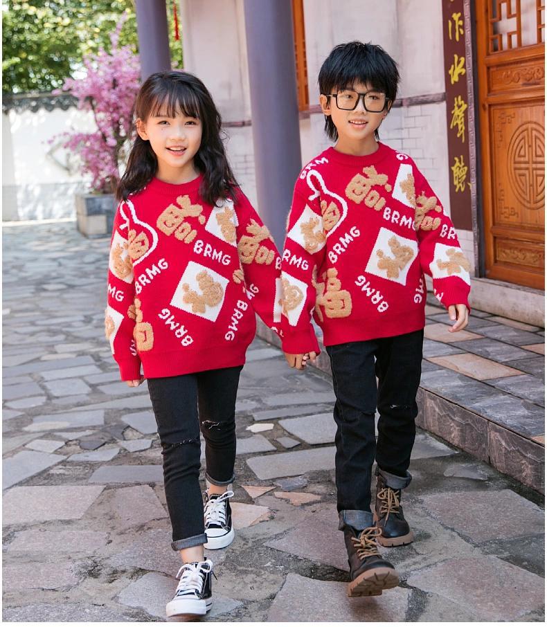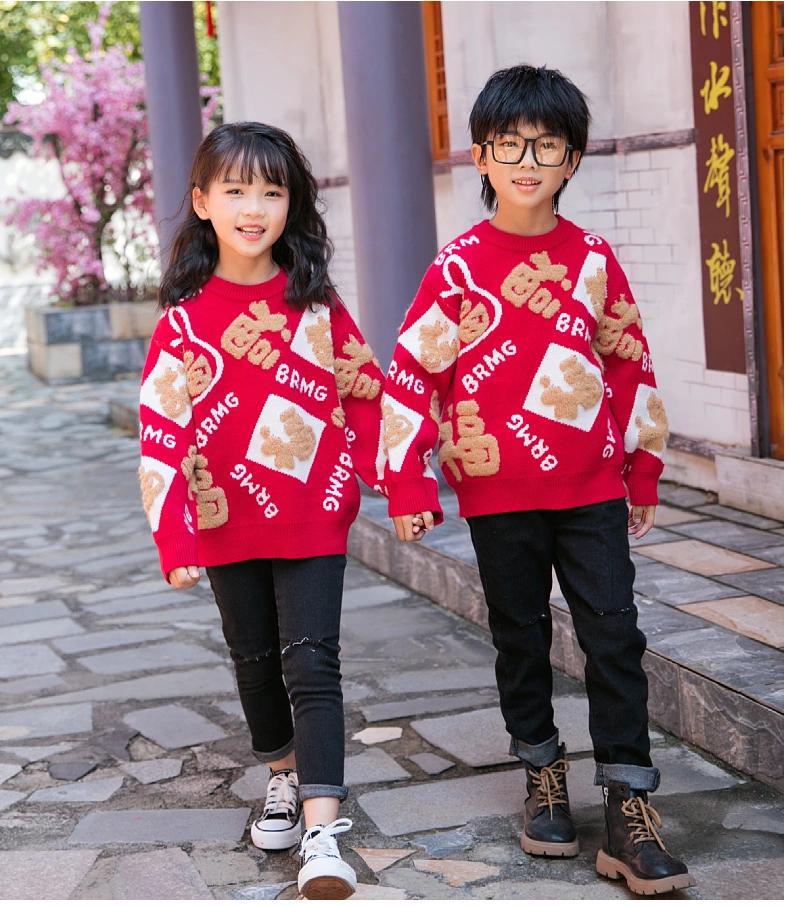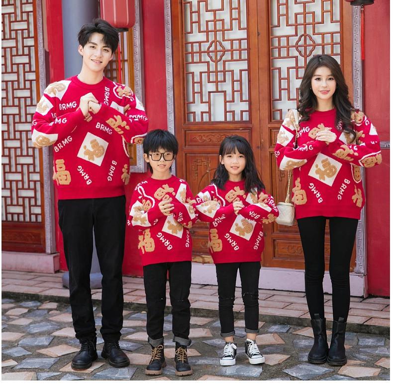 Семейный портрет, утолщенный красный семейный свитер, праздничная новогодняя одежда, одежда для семьи из трех и четырех детей, одежда для пар, семейная одежда