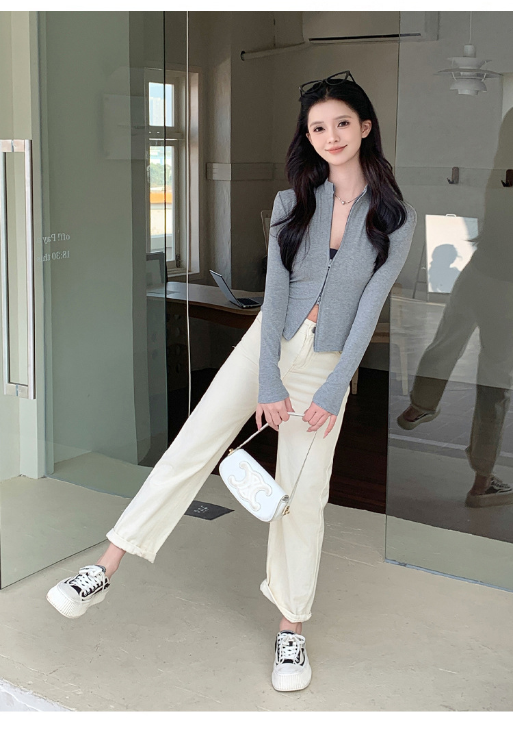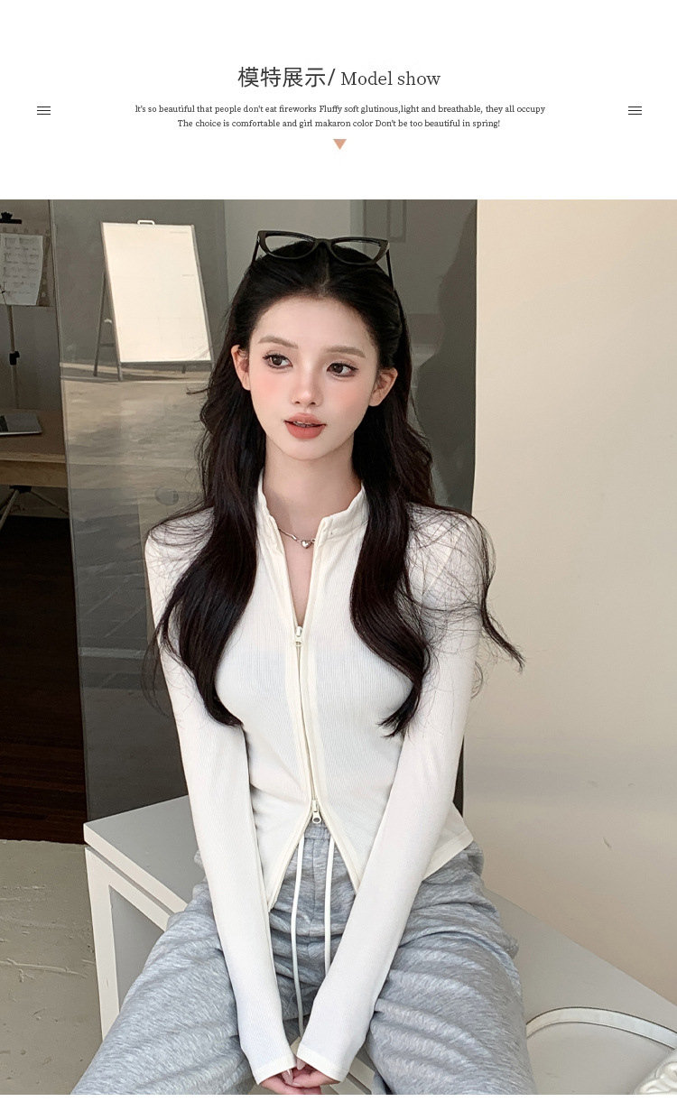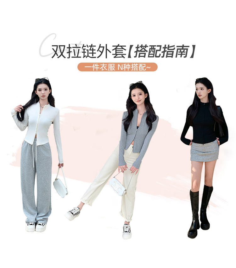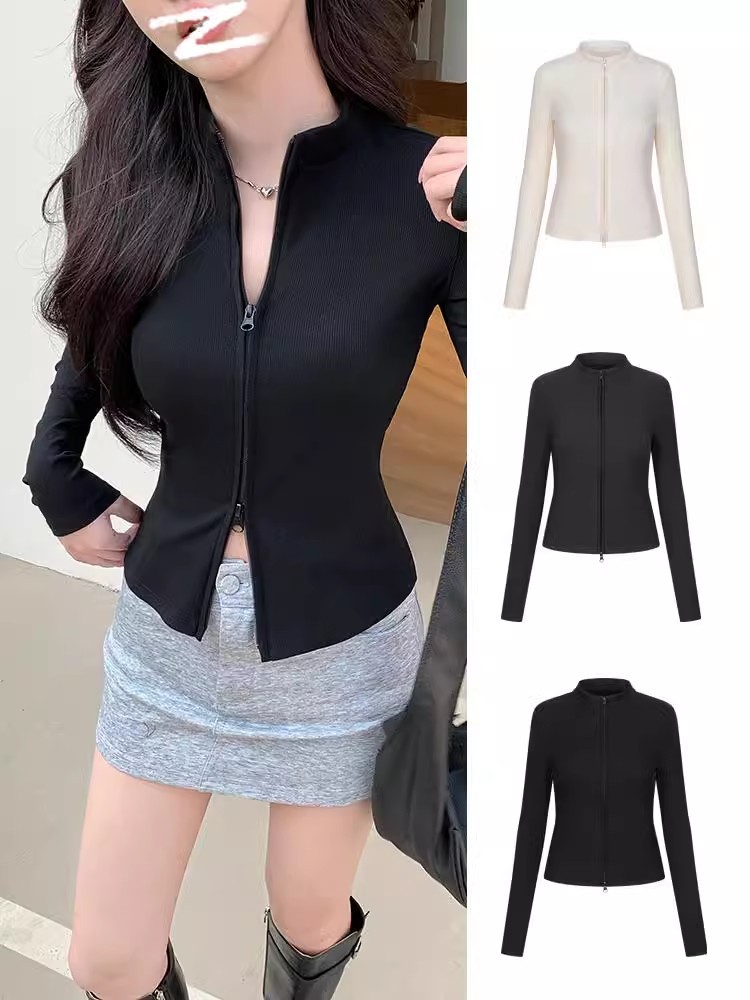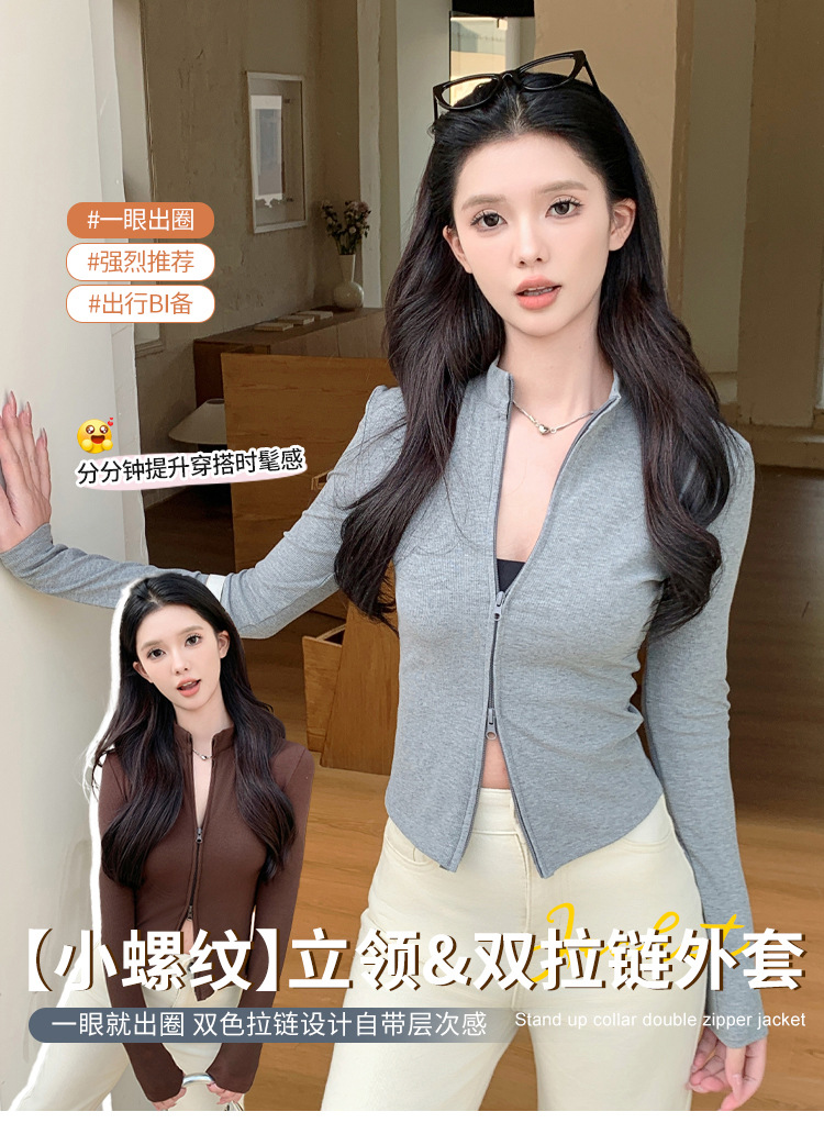 H823 резьбовой воротник с двойной молнией куртка женский весенний и осенний новый трикотажный кардиган