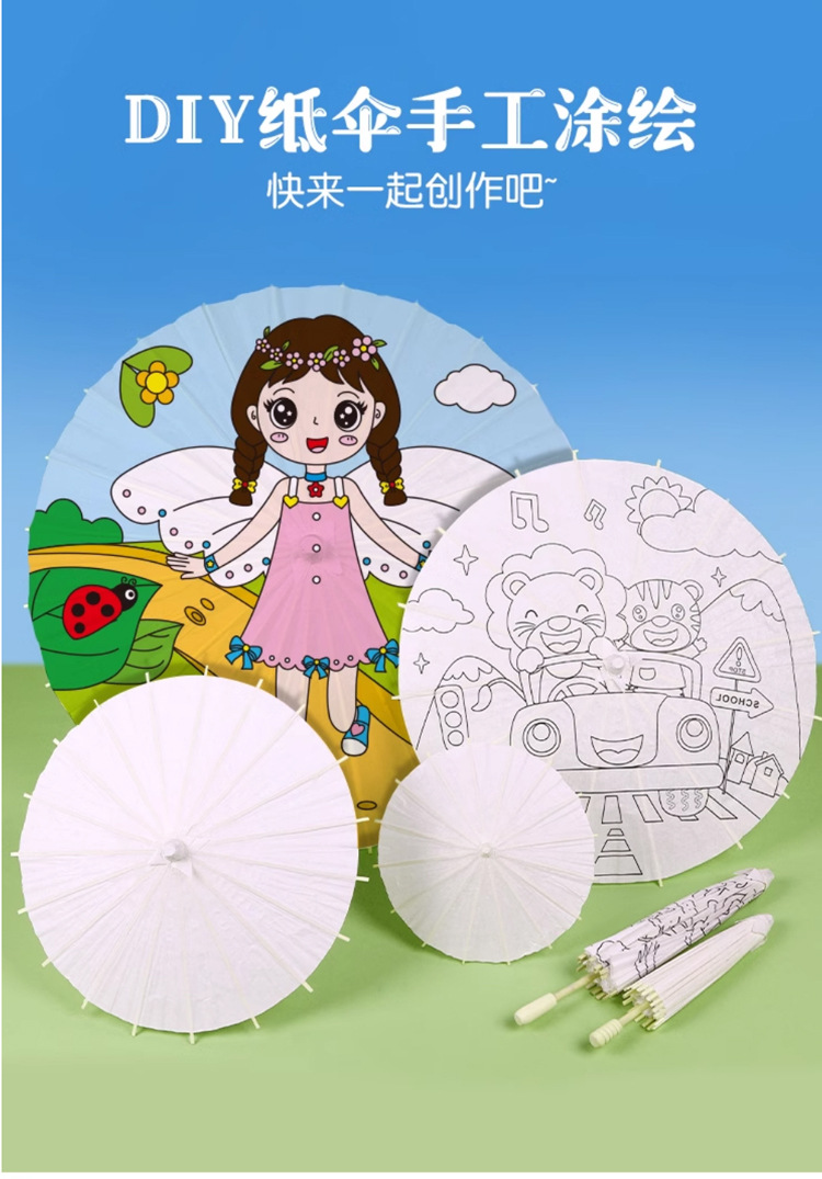 Пустой бумажный зонт детский сад diy ручной работы материал рисованной картины раскраски зонт белый древний реквизит