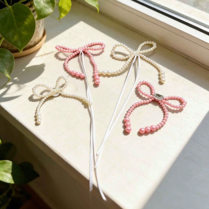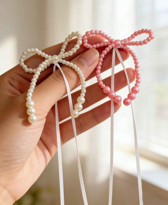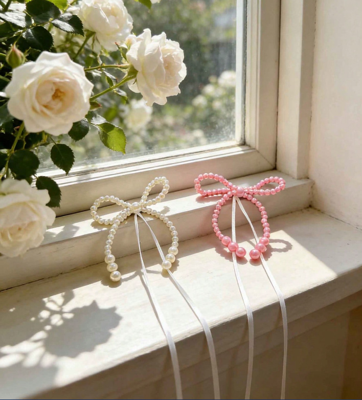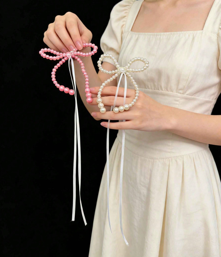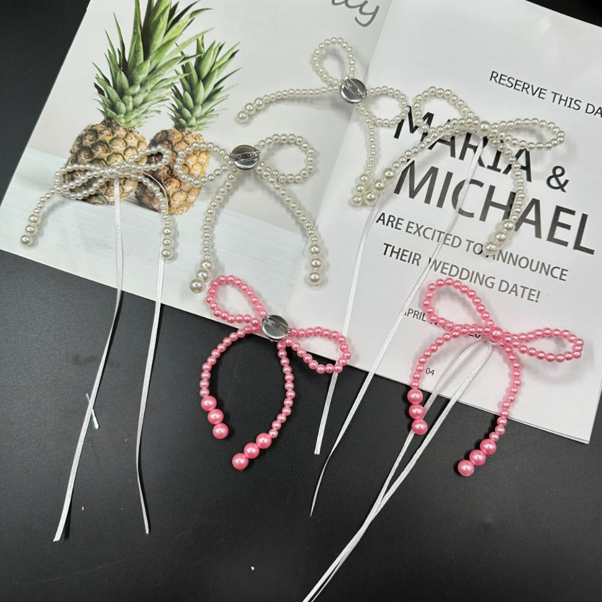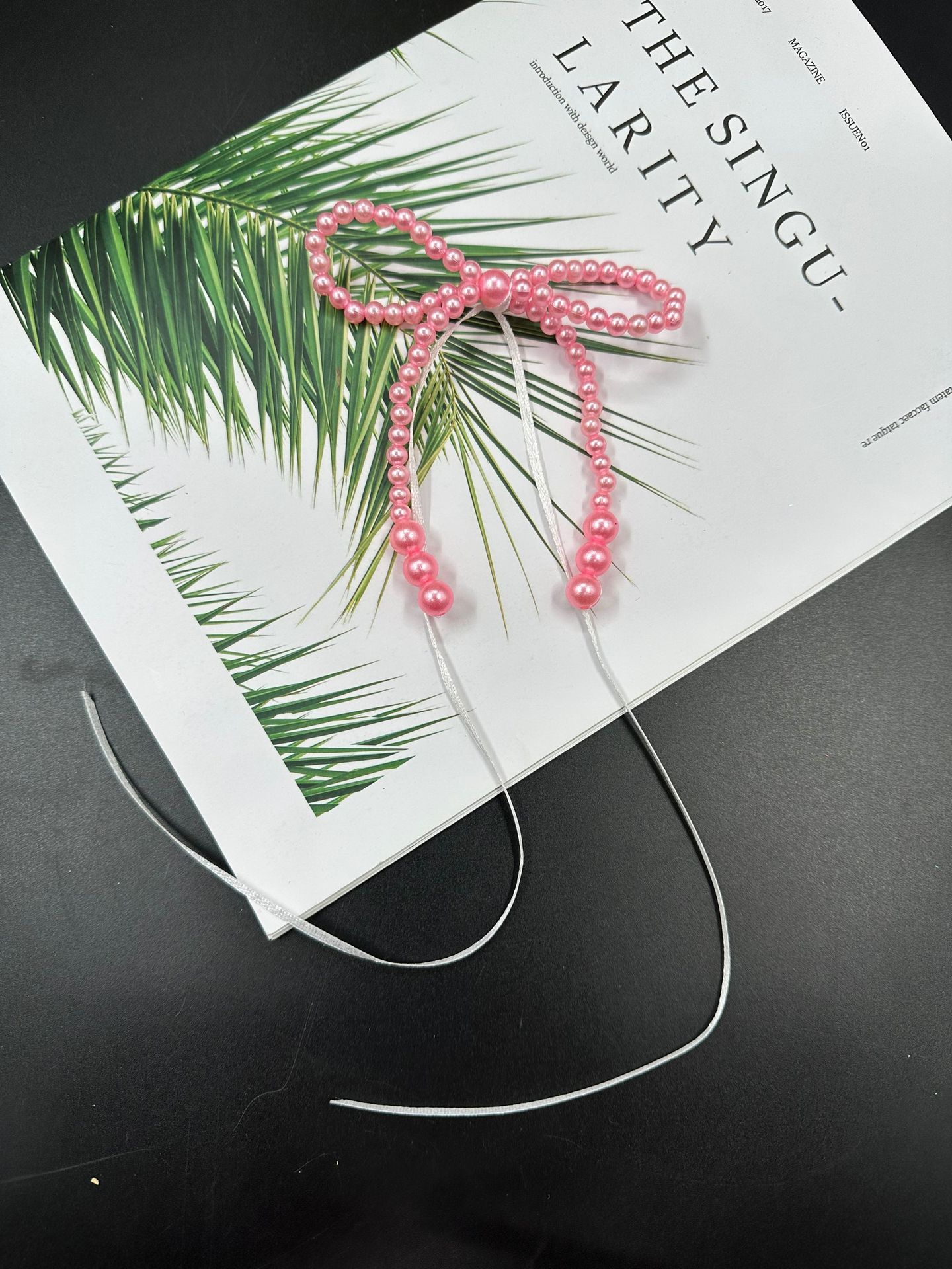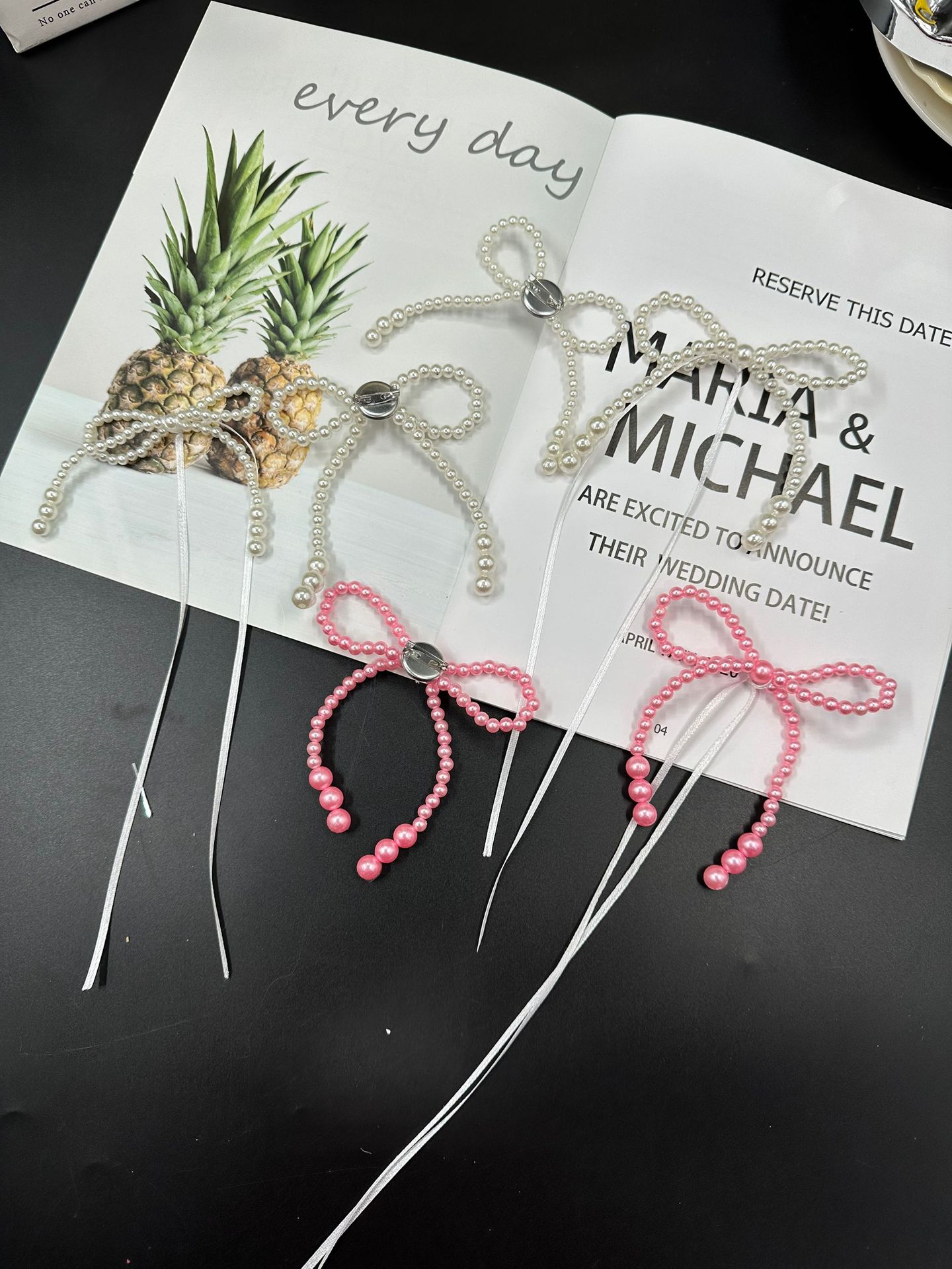 Жемчужный бант 7*9 см; Жемчужный бант 10*11 см; Большой жемчужный бант розового цвета; Шнурок с жемчужным бантом 8*9 см; Ленточка с жемчужным бантом 10*11 см; Брошь-бантик 8*8 см; 10*11 см брошь с белым бантом; 10*11 см булавка с розовым бантом; 7*9 см с бантом на шнуре длиной 30 см; 10*11 см с белым бантом на веревке длиной 30 см; Розовый бант размером 10*11 см с веревкой длиной 30 см; Жемчужная застежка