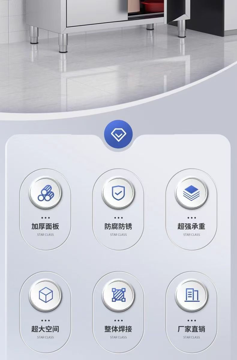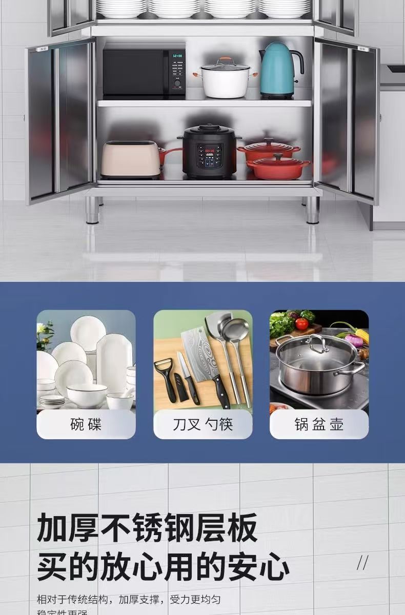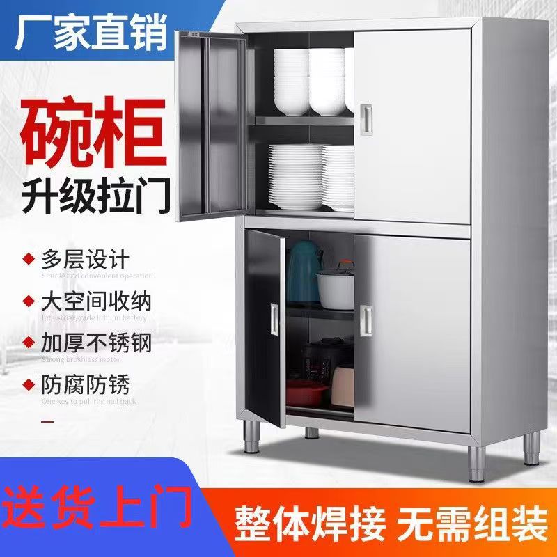 Очень толстый встроенный четырехдверный шкаф из нержавеющей стали 304 с двойными дверями, шкаф для торговцев, шкаф для хранения в столовой.