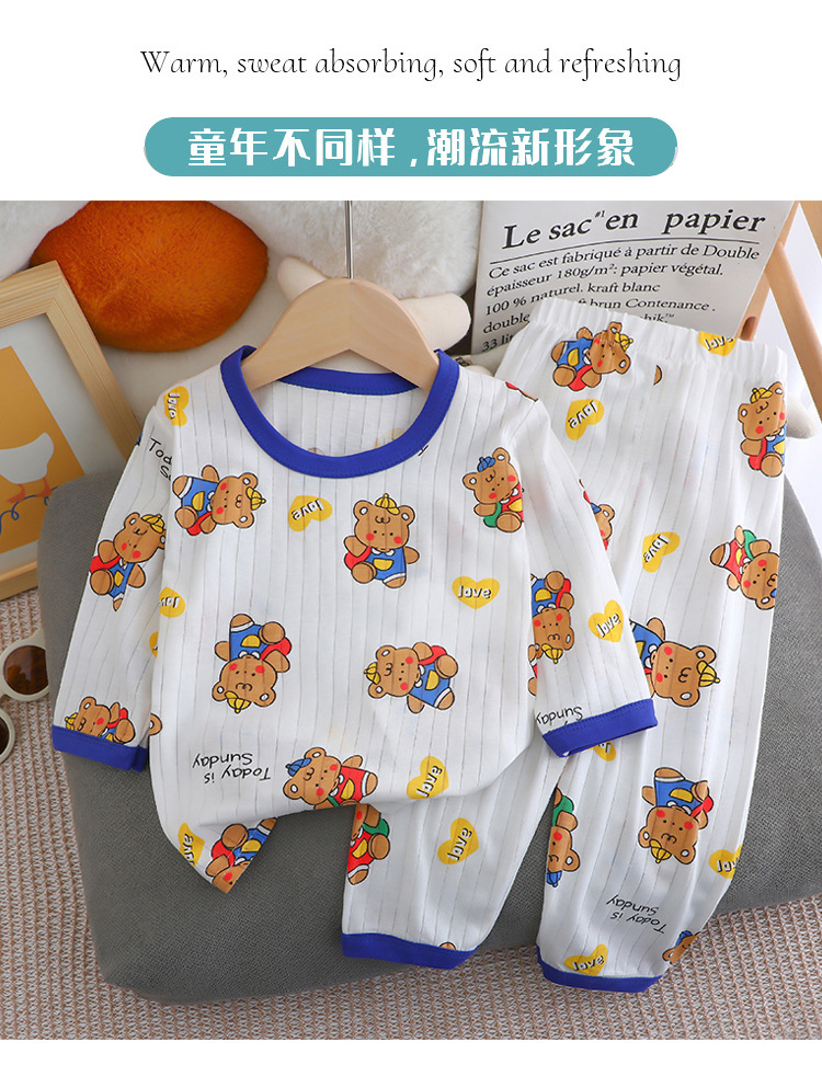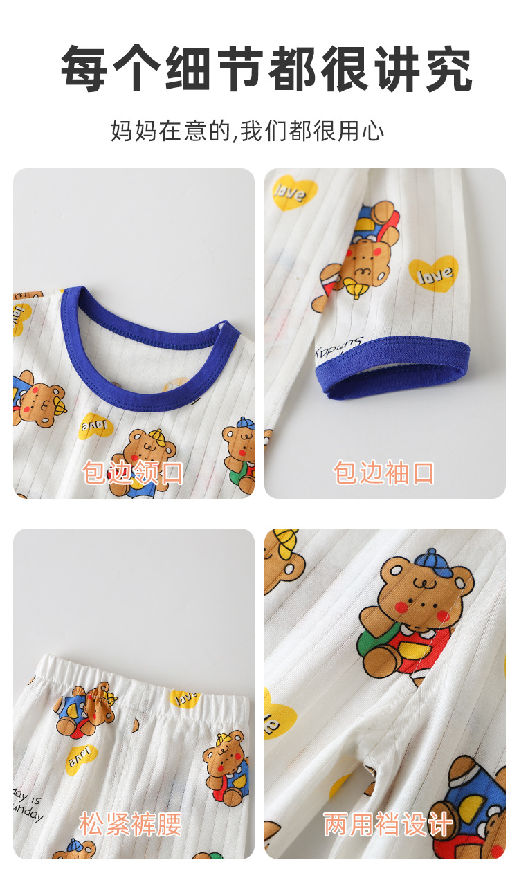 2024 Летние детские брюки с длинными рукавами, домашние костюмы, хлопковое нижнее белье, детское тонкое пижама, пижама, пижама, одежда для кондиционирования воздуха