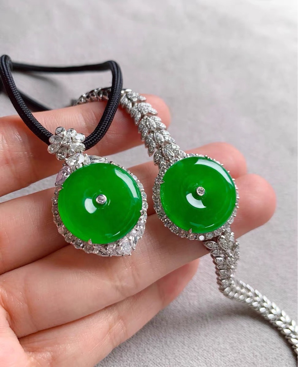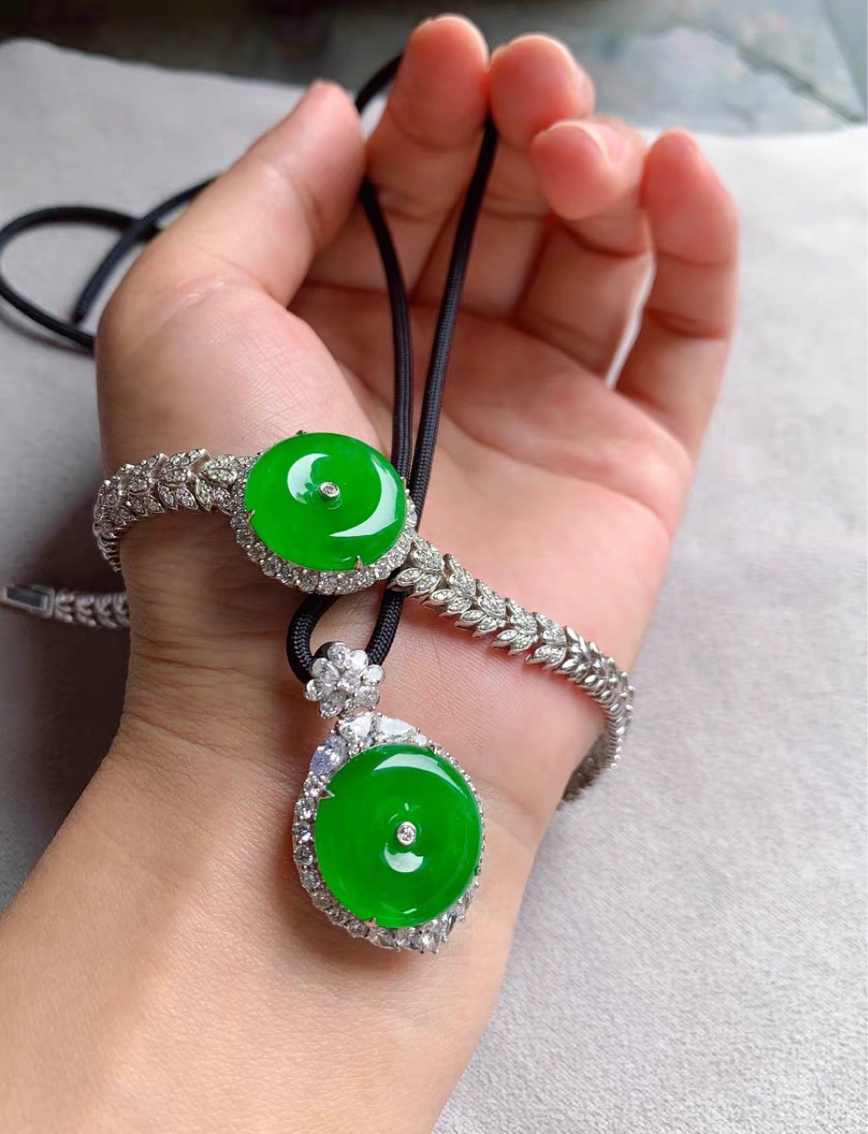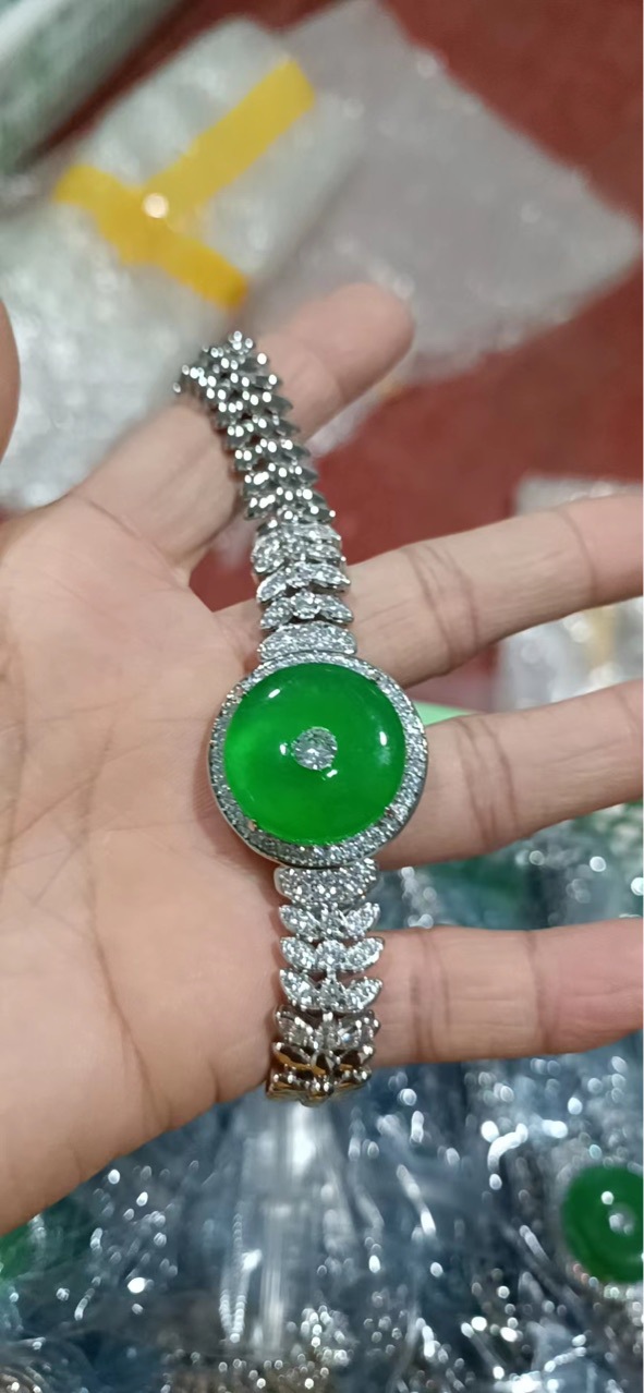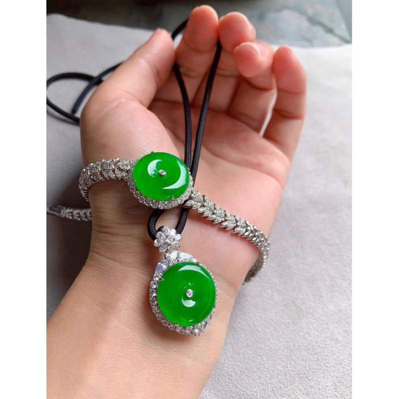 Изумрудный ледяной вид Ян зеленый мир пряжка с 18 золотыми подвесками браслет набор женских бирманских товаров